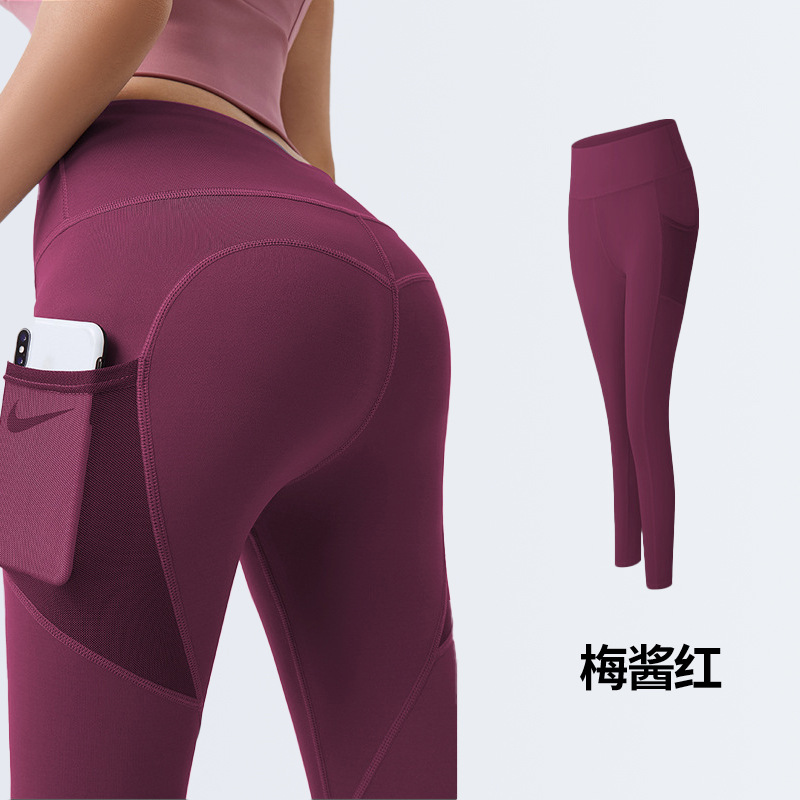 힙을 올려주는 메쉬 사이드 포켓 요가 팬츠, 여성 여름 속건성 탄성 복숭아 엉덩이 타이츠 러닝 요가 피트니스 팬츠스토어 가기