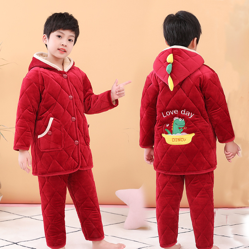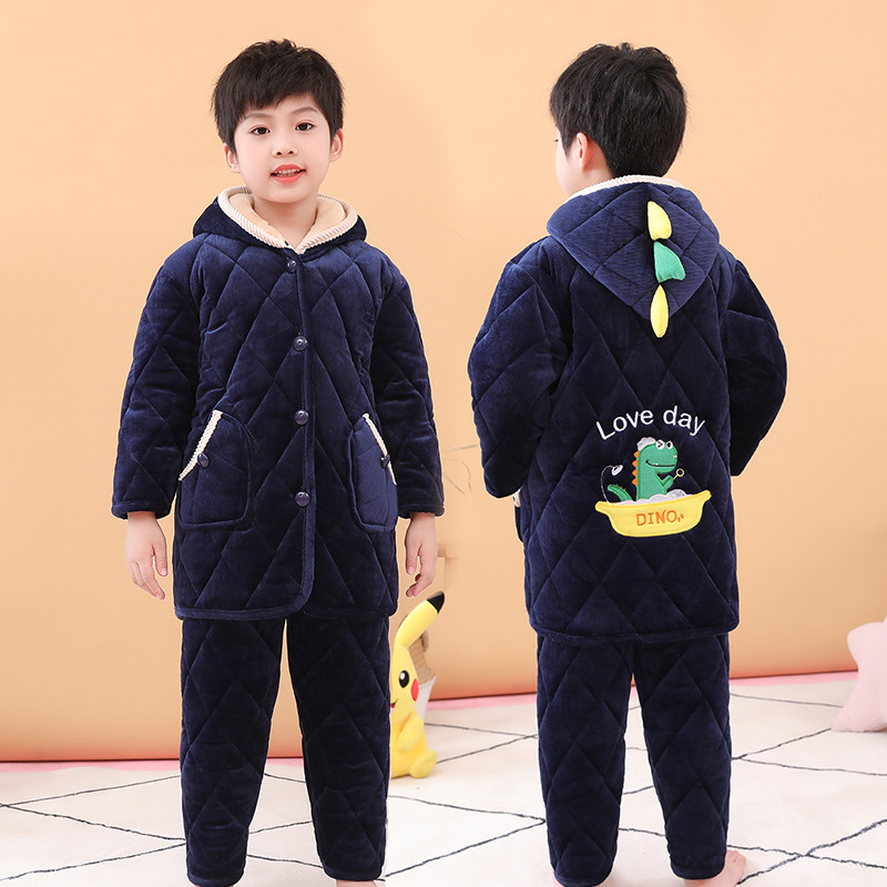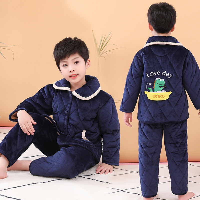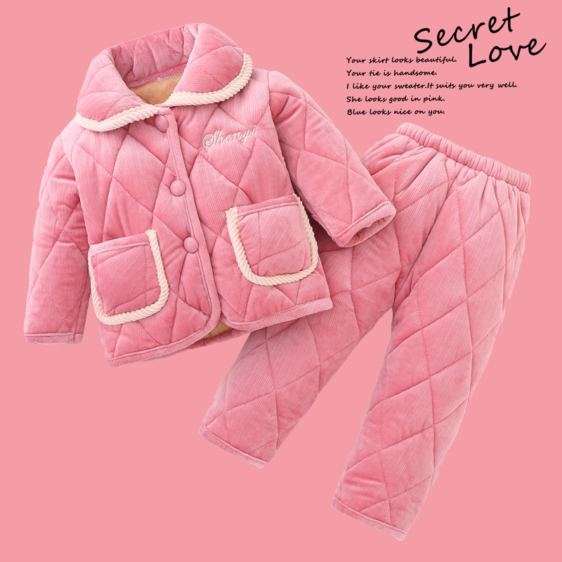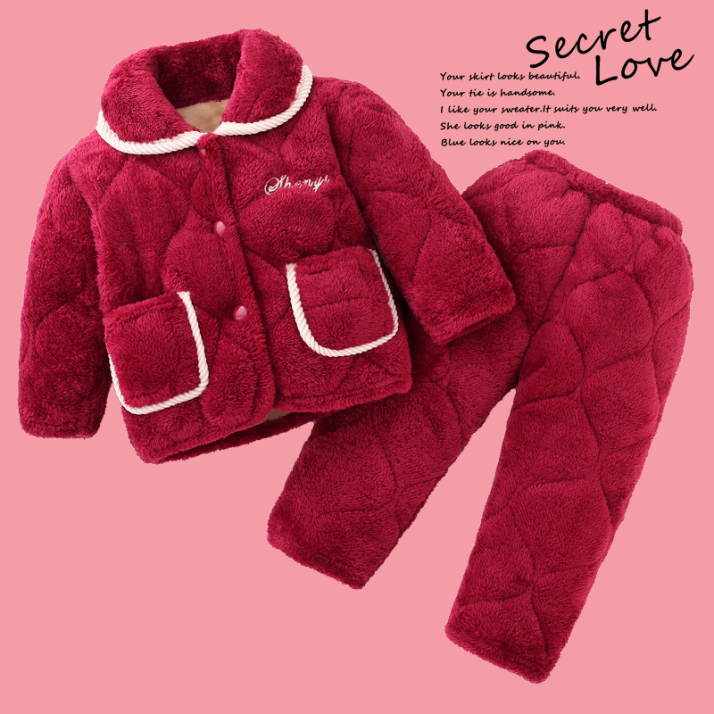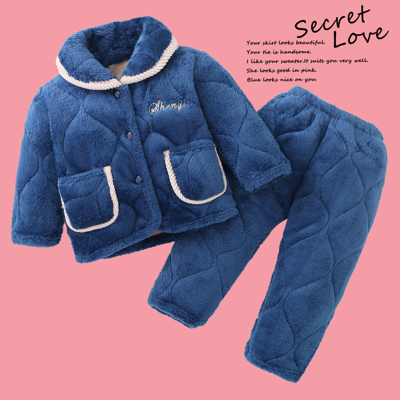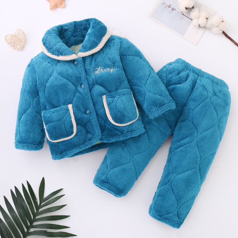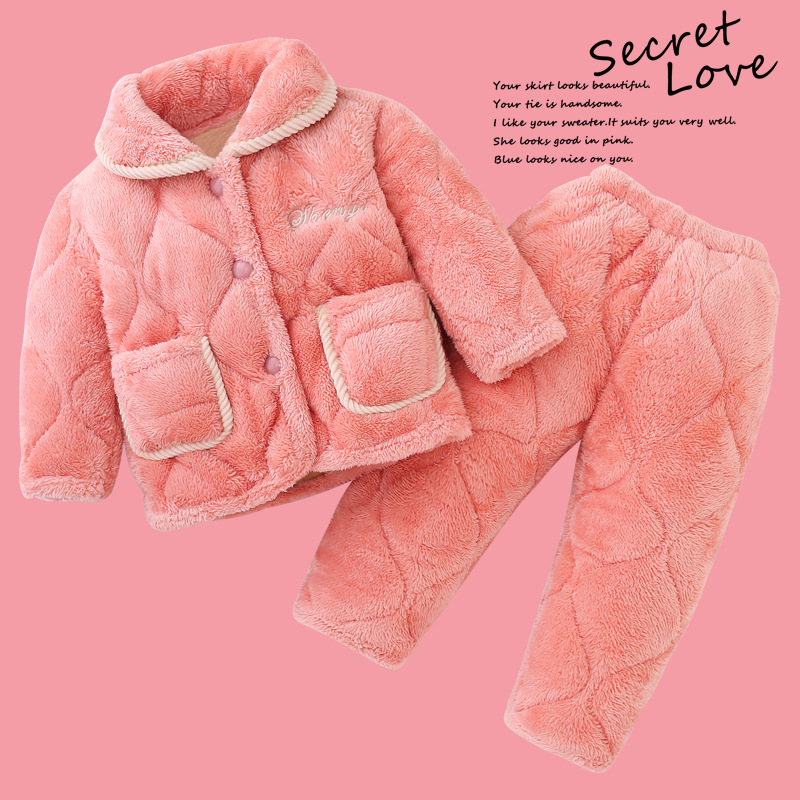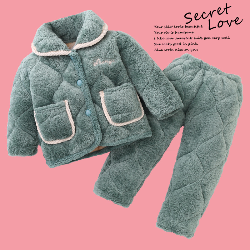 소년 소녀 어린이 산호 양털 봉제 가정 옷을 세트 겨울 어린이 3 층 퀼트 플란넬 잠옷