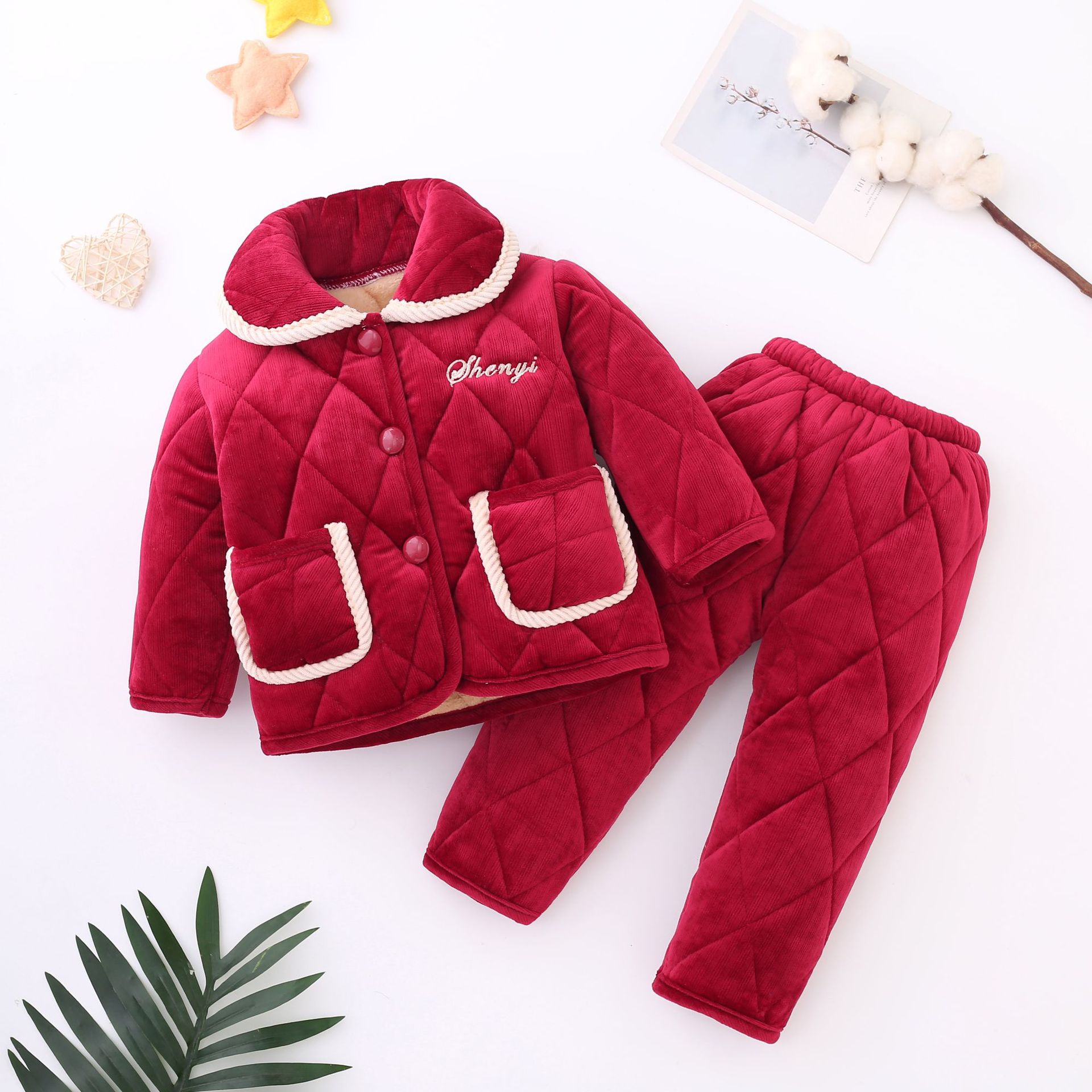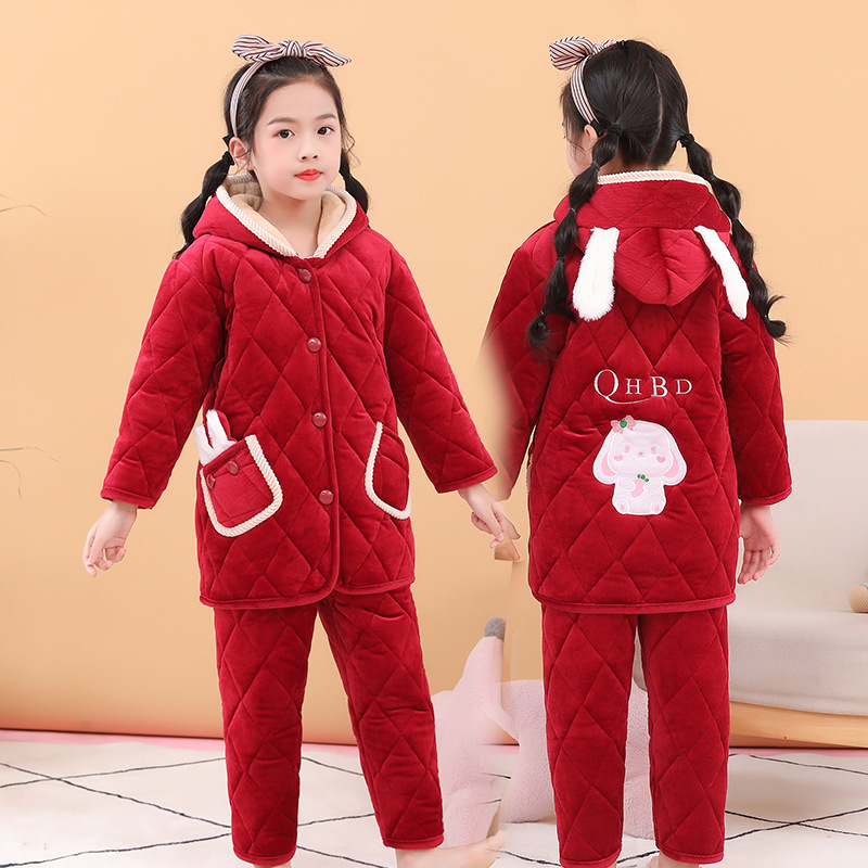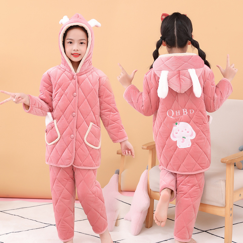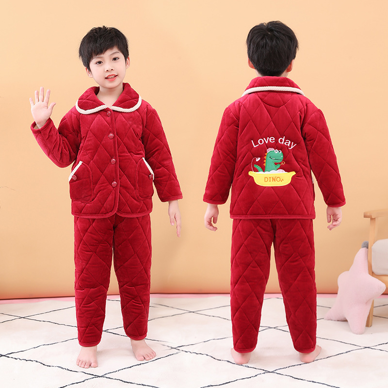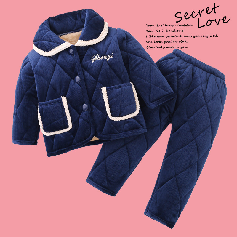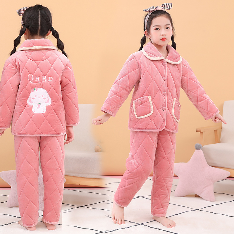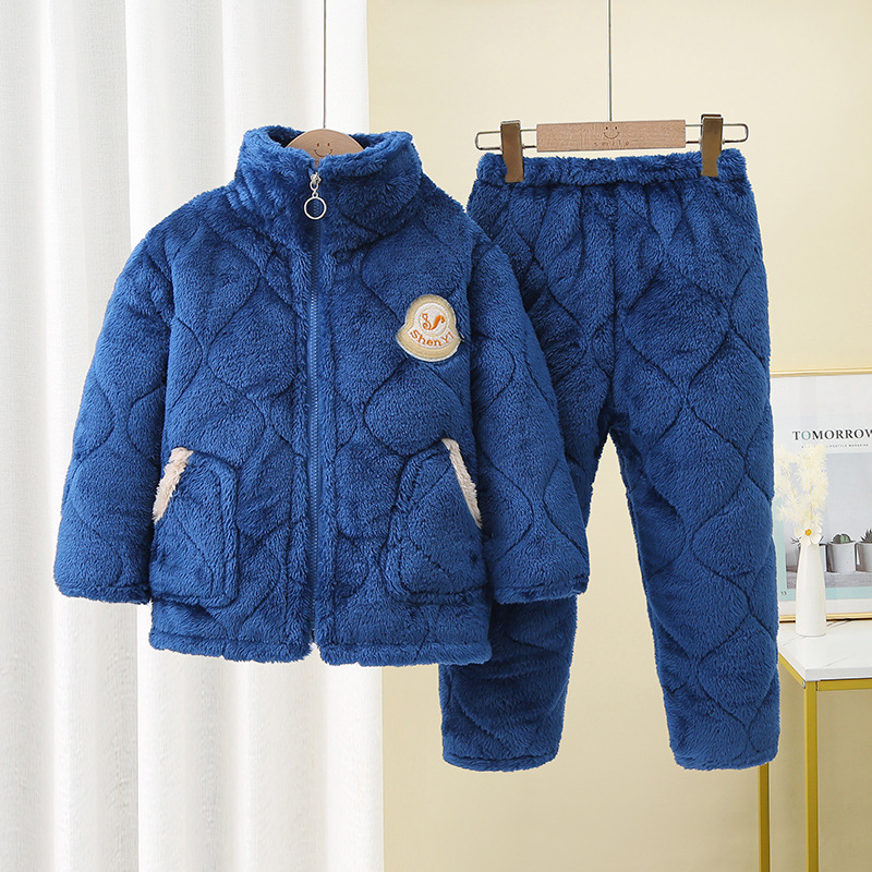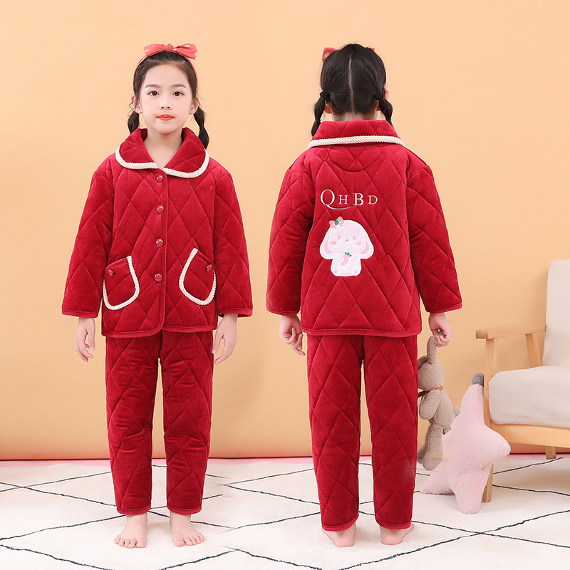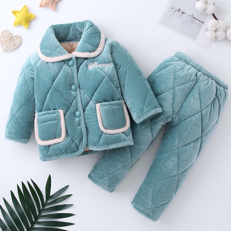 소년 소녀 어린이 산호 양털 봉제 가정 옷을 세트 겨울 어린이 3 층 퀼트 플란넬 잠옷