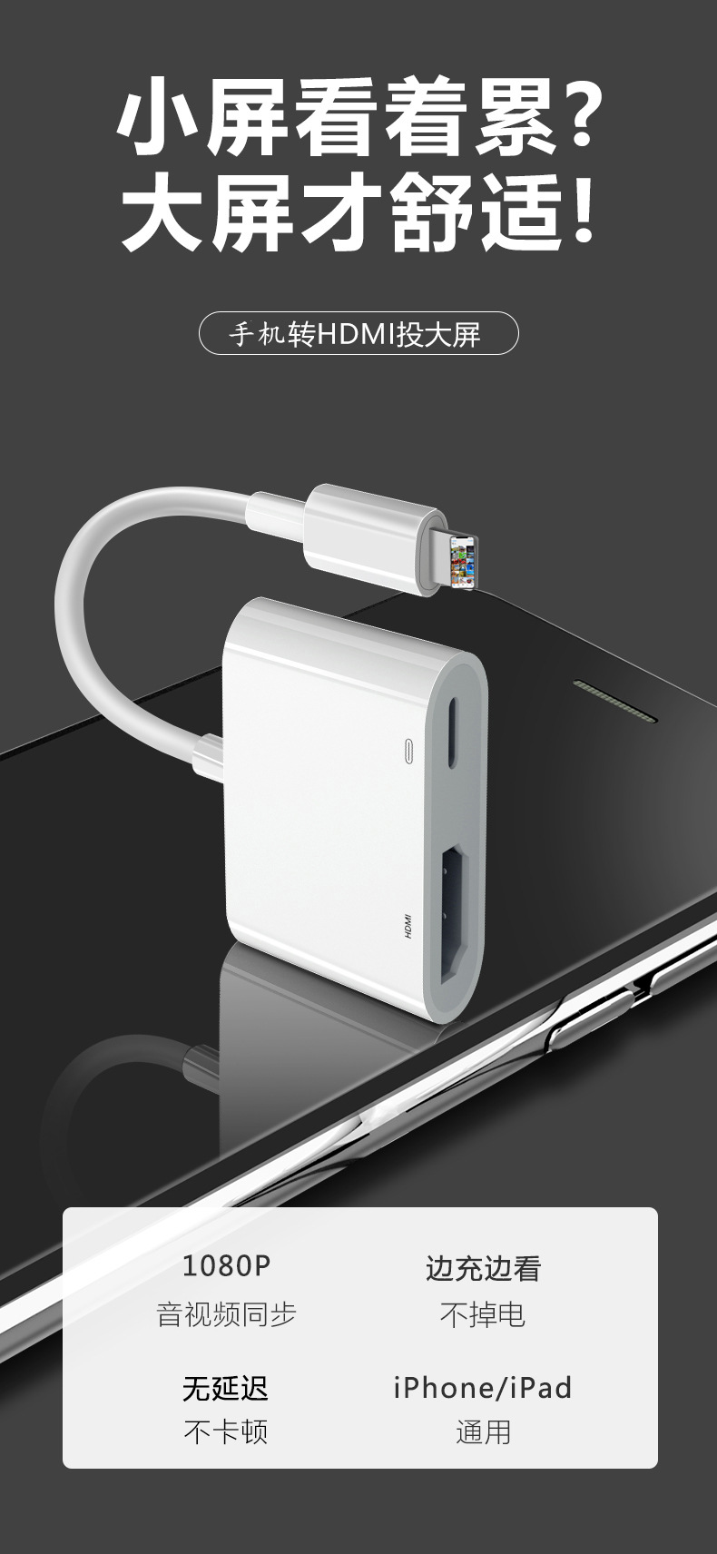 HDMI 동일 화면 장치는 휴대폰을 유선으로 연결하여 TV 대형 화면 모니터로 변환하여 전원 공급 없이 고화질 전송 및 화면 투사가 가능합니다.스토어 가기