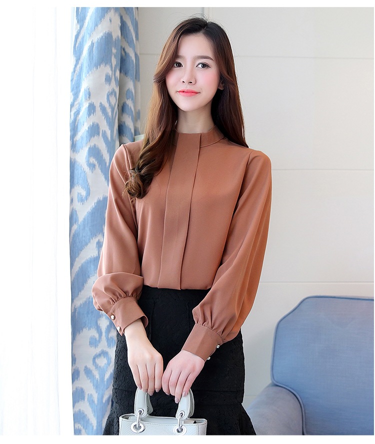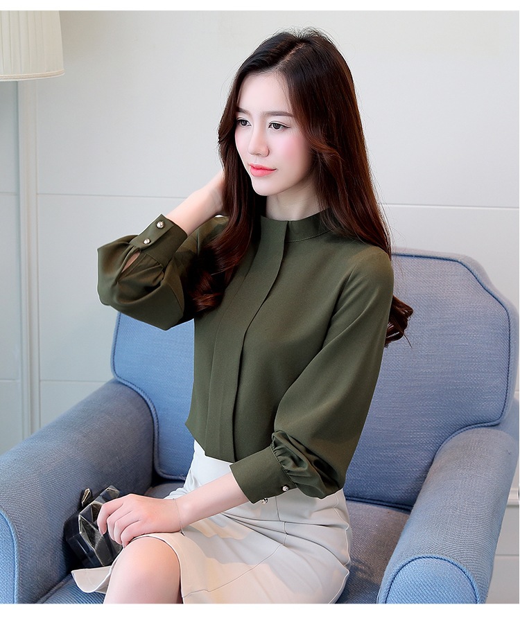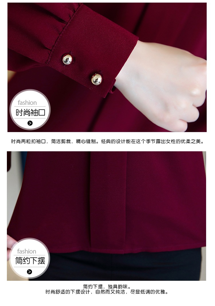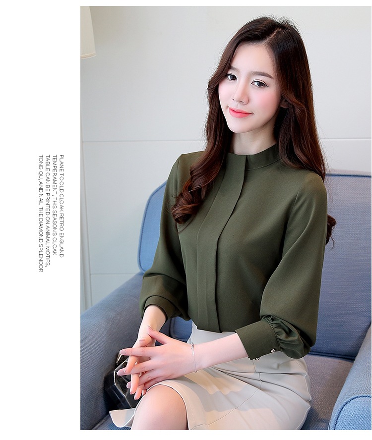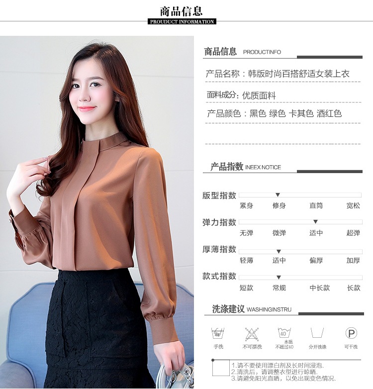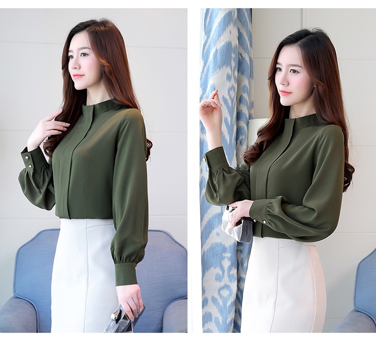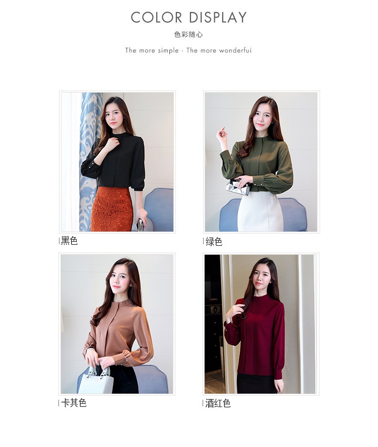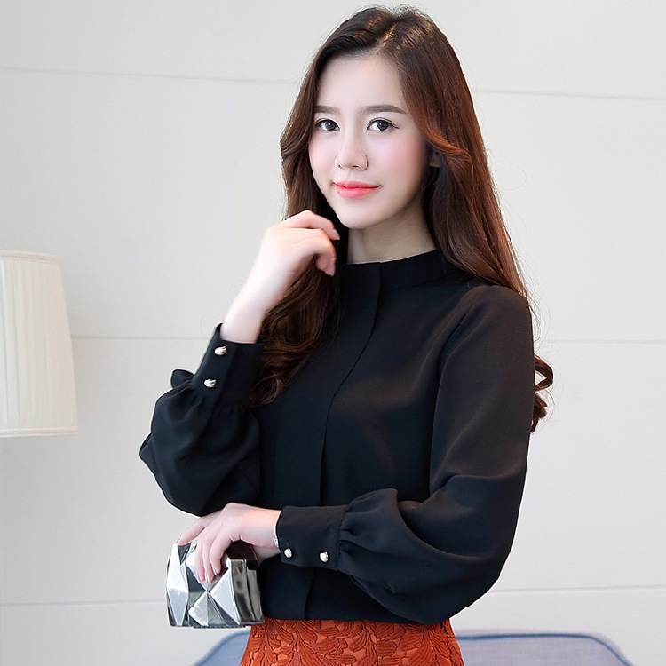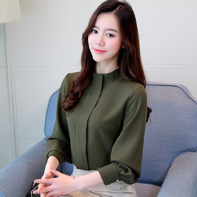 2023 봄 새로운 플러스 사이즈 여성의 느슨한 바닥 셔츠 탑 칼라 셔츠 다목적 긴 소매 여성의 쉬폰 셔츠스토어 가기