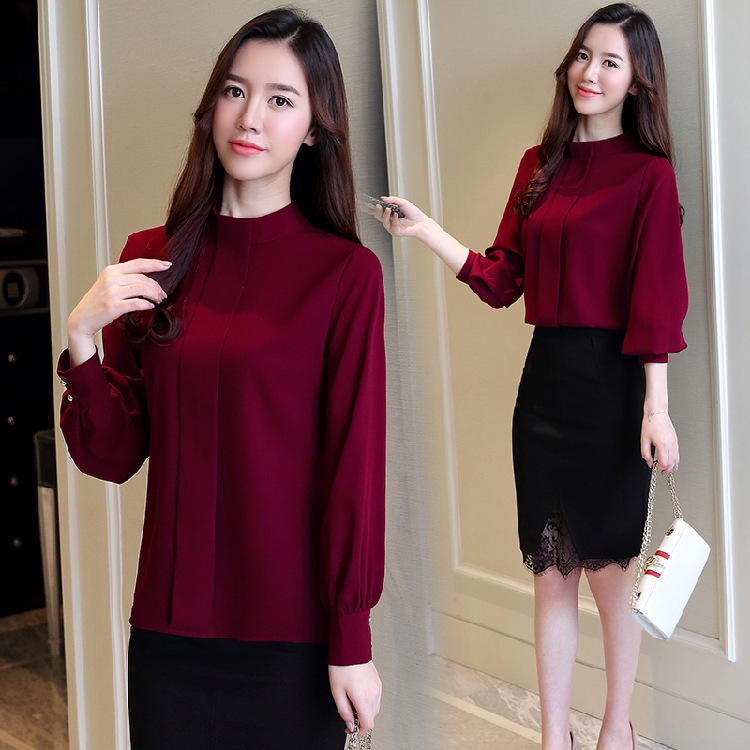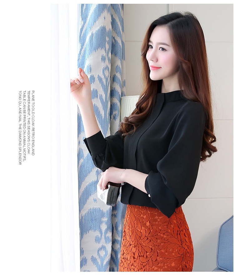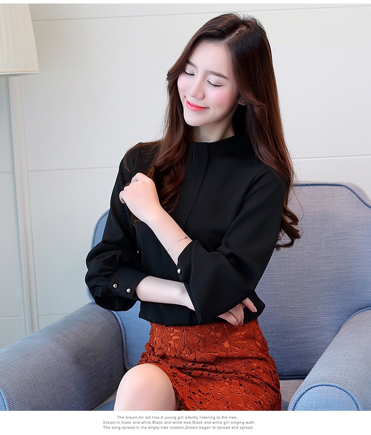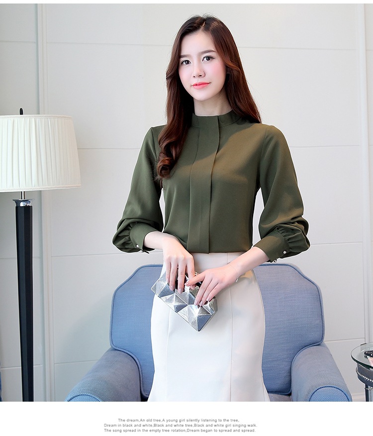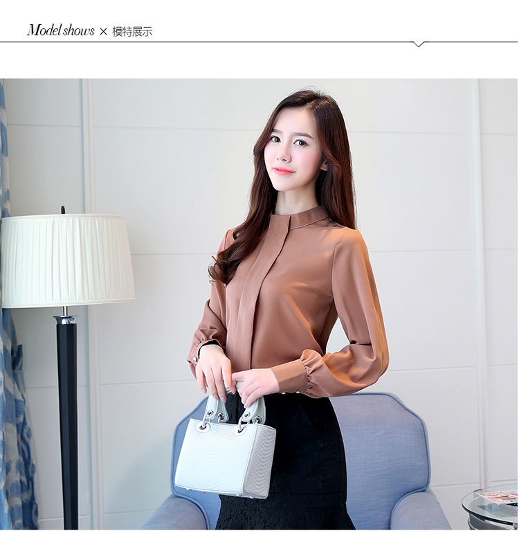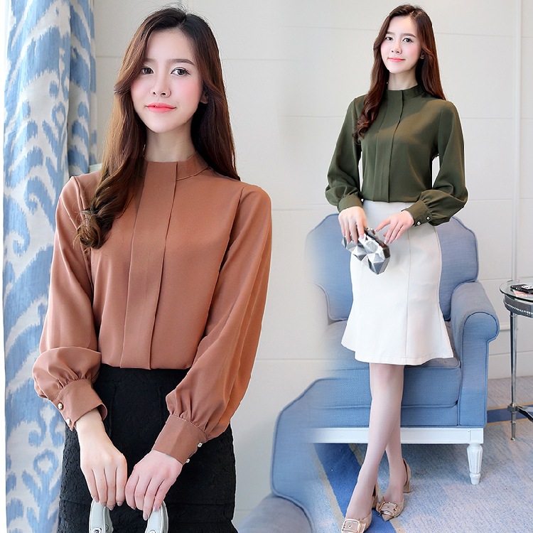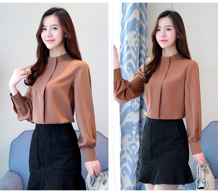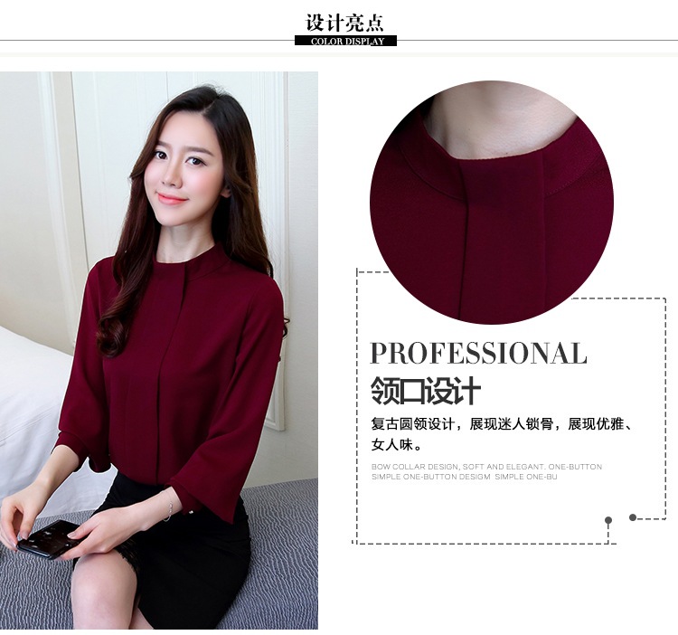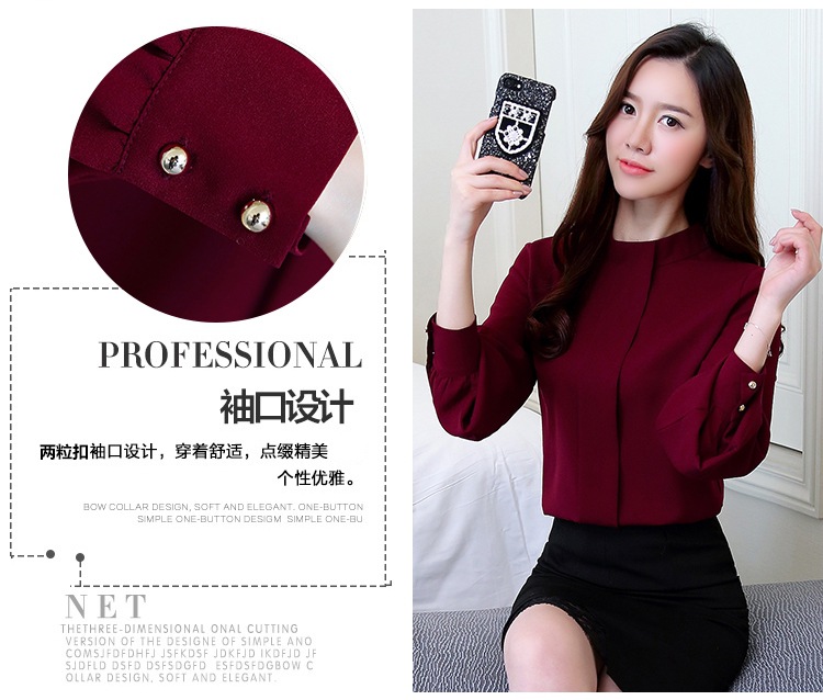 2023 봄 새로운 플러스 사이즈 여성의 느슨한 바닥 셔츠 탑 칼라 셔츠 다목적 긴 소매 여성의 쉬폰 셔츠스토어 가기