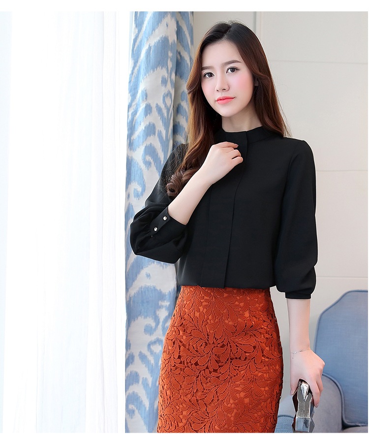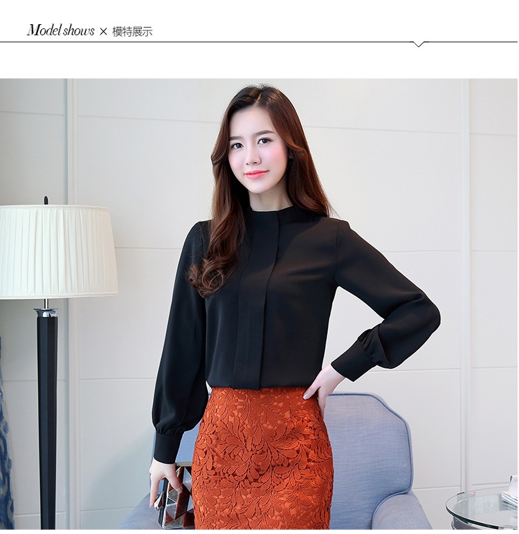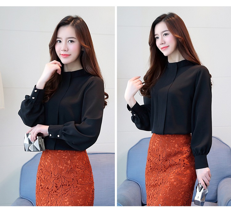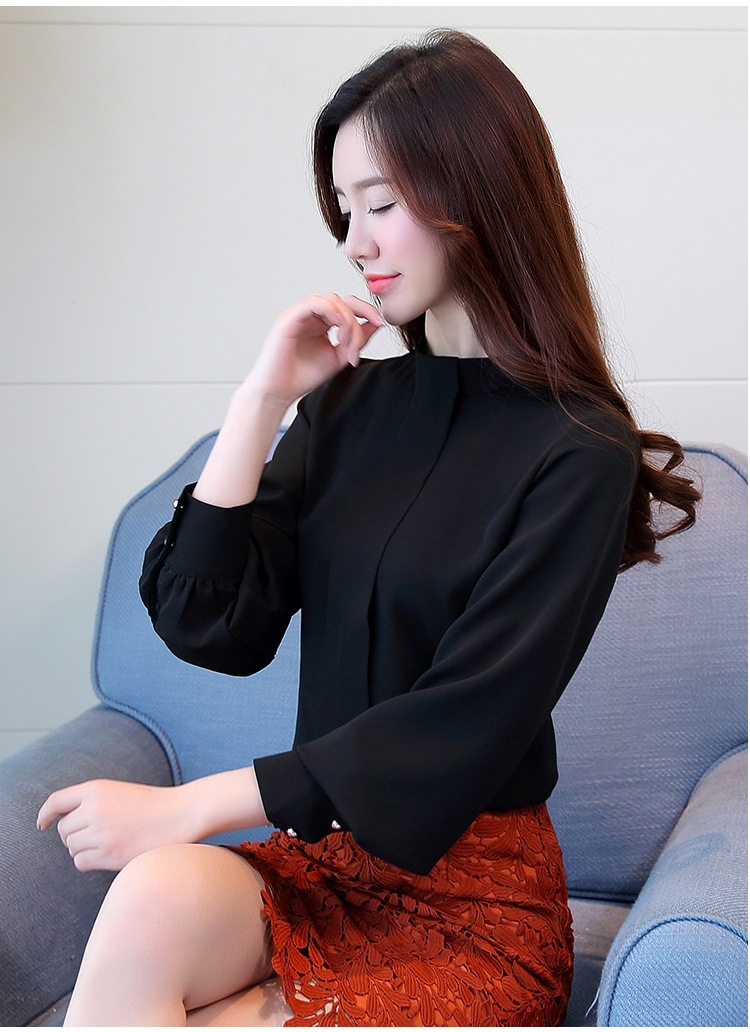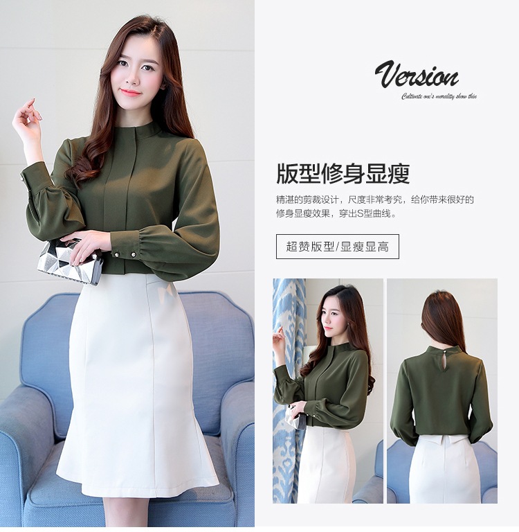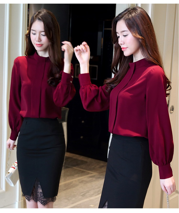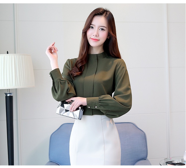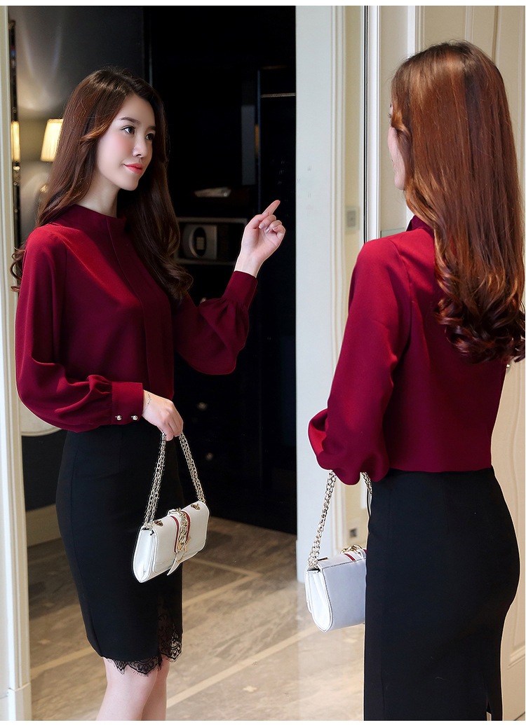2023 봄 새로운 플러스 사이즈 여성의 느슨한 바닥 셔츠 탑 칼라 셔츠 다목적 긴 소매 여성의 쉬폰 셔츠스토어 가기