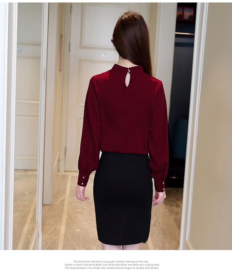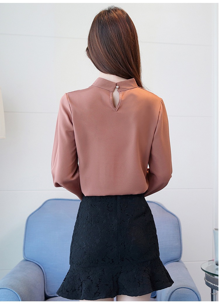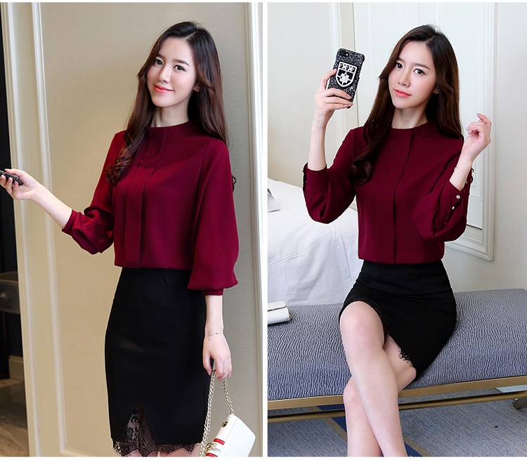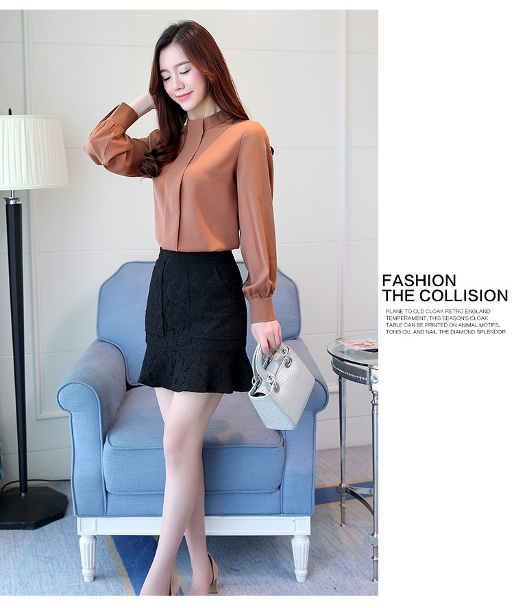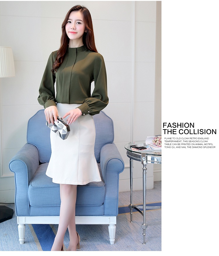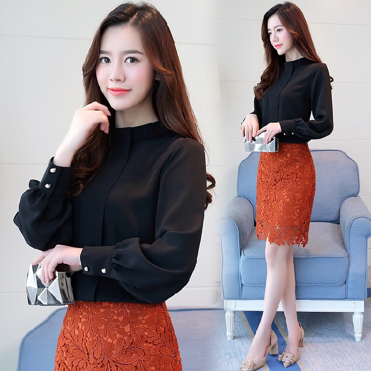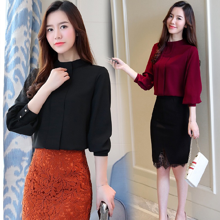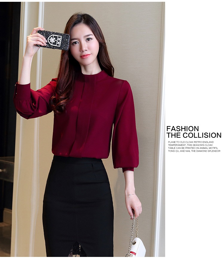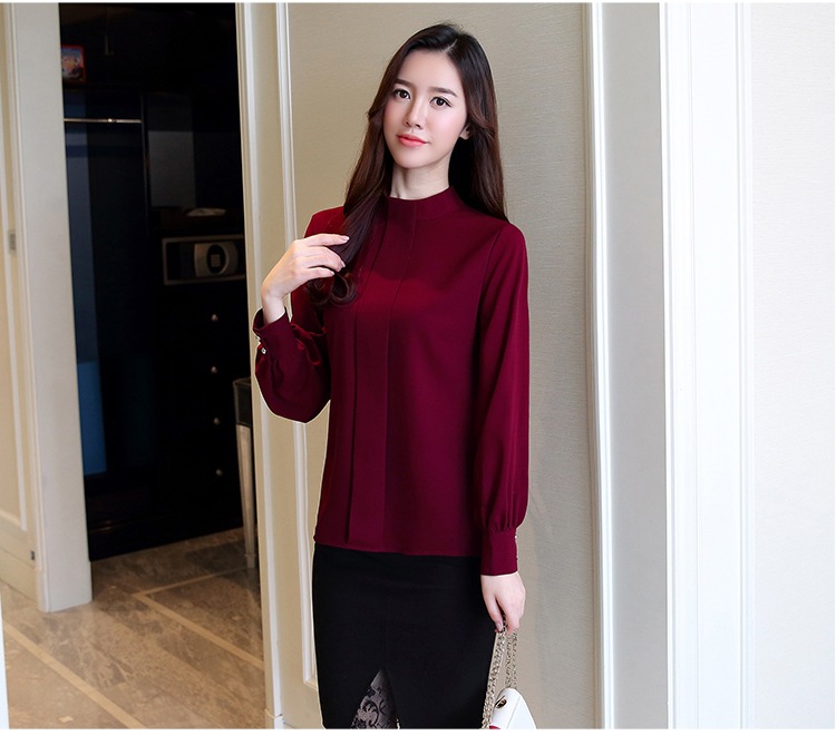 2023 봄 새로운 플러스 사이즈 여성의 느슨한 바닥 셔츠 탑 칼라 셔츠 다목적 긴 소매 여성의 쉬폰 셔츠스토어 가기
