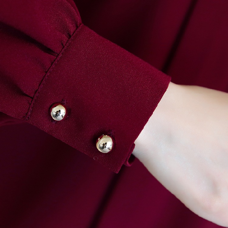 2023 봄 새로운 플러스 사이즈 여성의 느슨한 바닥 셔츠 탑 칼라 셔츠 다목적 긴 소매 여성의 쉬폰 셔츠