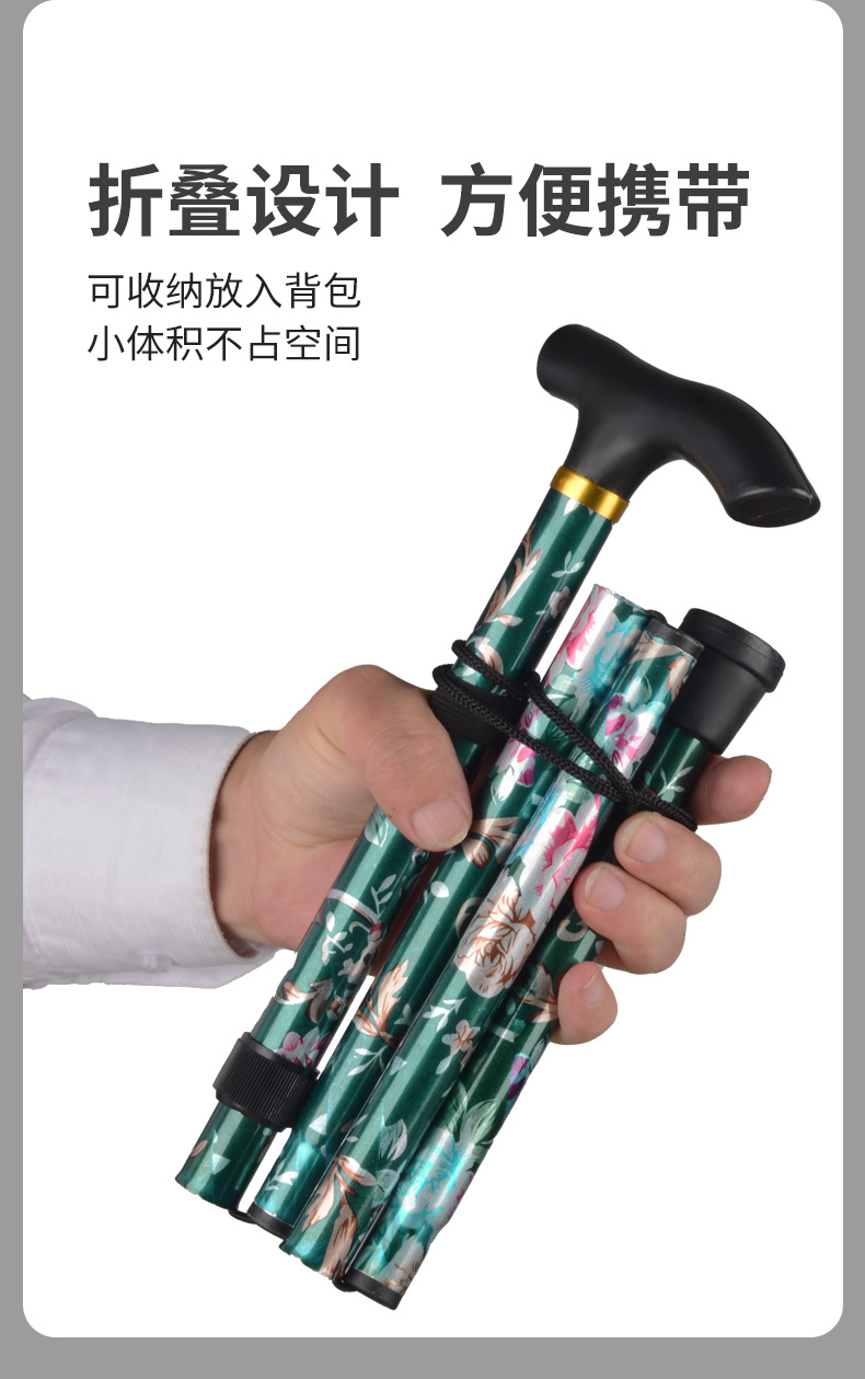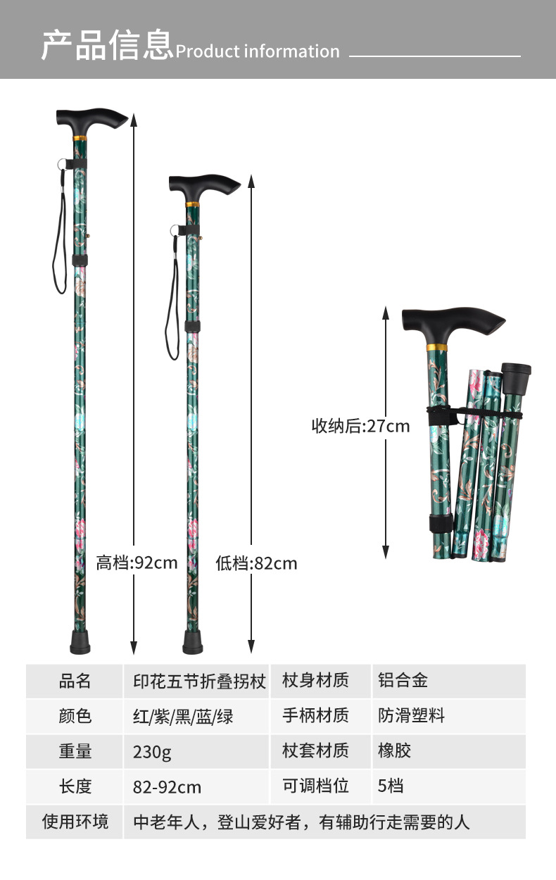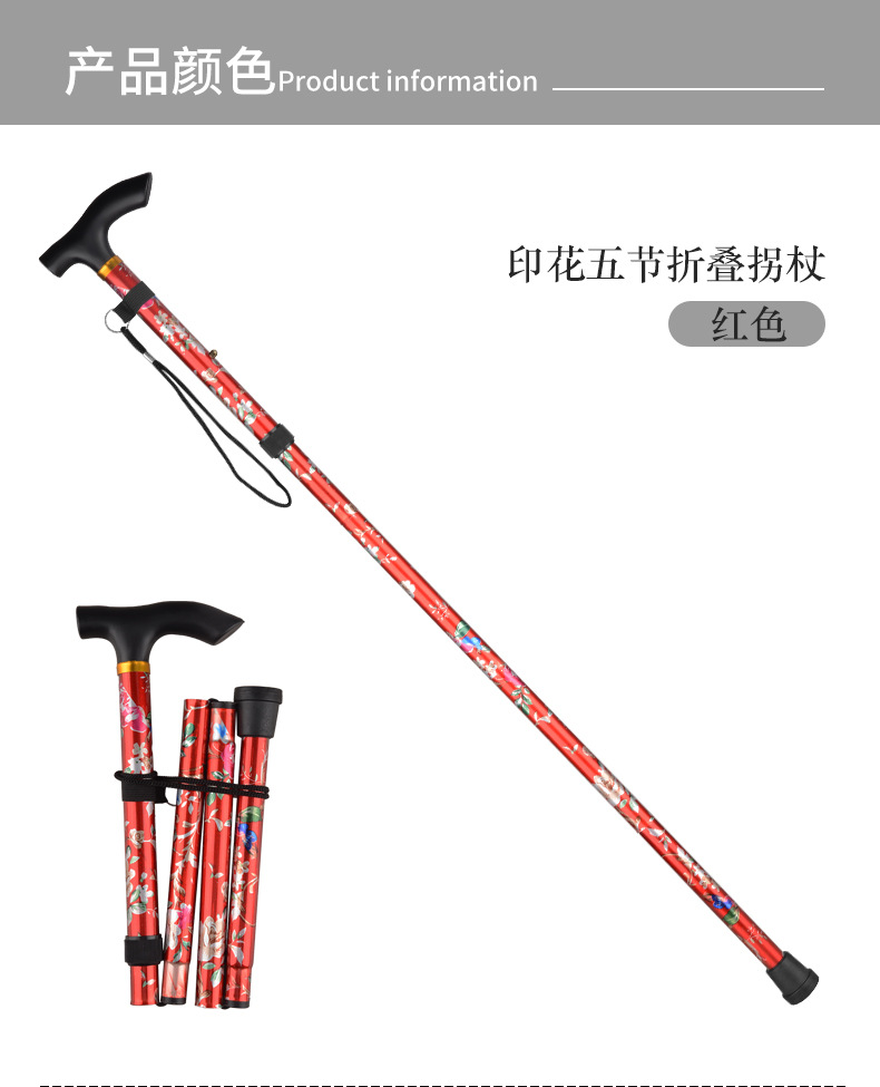 국경을 넘는 알루미늄 합금 접이식 등산 지팡이, 5단 접이식 지팡이, 노인용 하이킹 야외 지팡이, 휴대용 프린트 지팡이스토어 가기