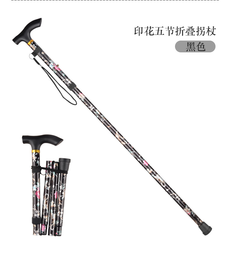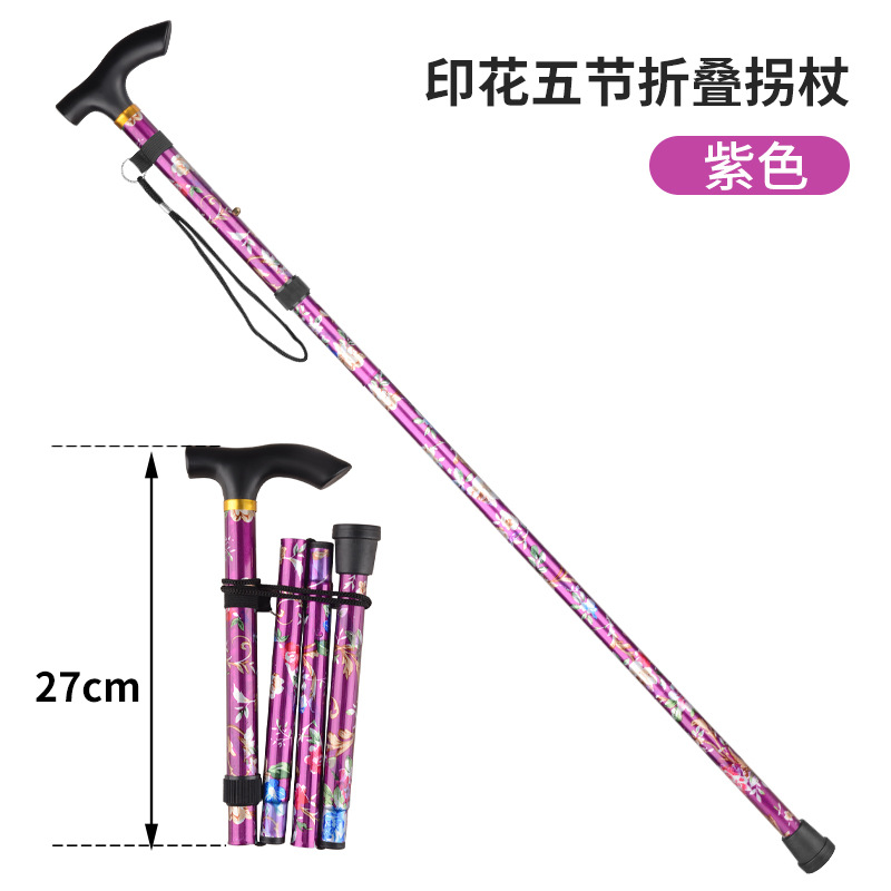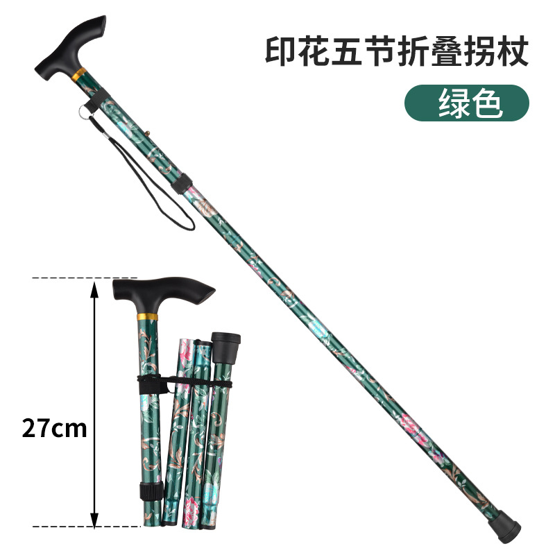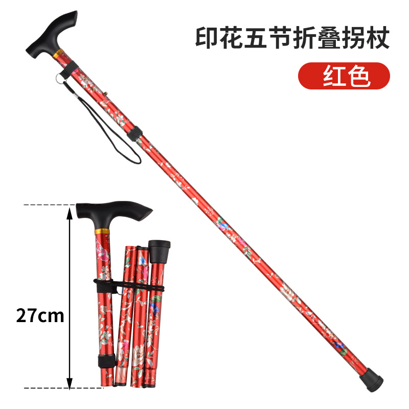국경을 넘는 알루미늄 합금 접이식 등산 지팡이, 5단 접이식 지팡이, 노인용 하이킹 야외 지팡이, 휴대용 프린트 지팡이