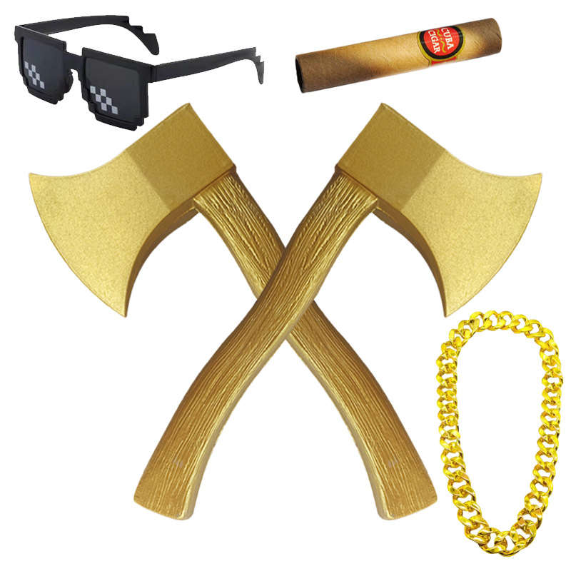• 황금 도끼 1개 + 은도끼 1개 + 모조 도끼 1개 + 모자이크 선글라스 1개 모조 시가 1개 모조 금 사슬 1개