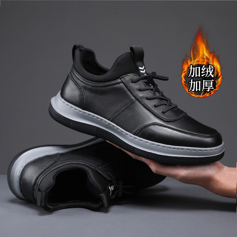 1층 소가죽 캐주얼 신발 남성용 가을 겨울 플리스 운동화 천연 가죽 두꺼운 밑창 남성 여행 신발 아빠 신발 1269스토어 가기