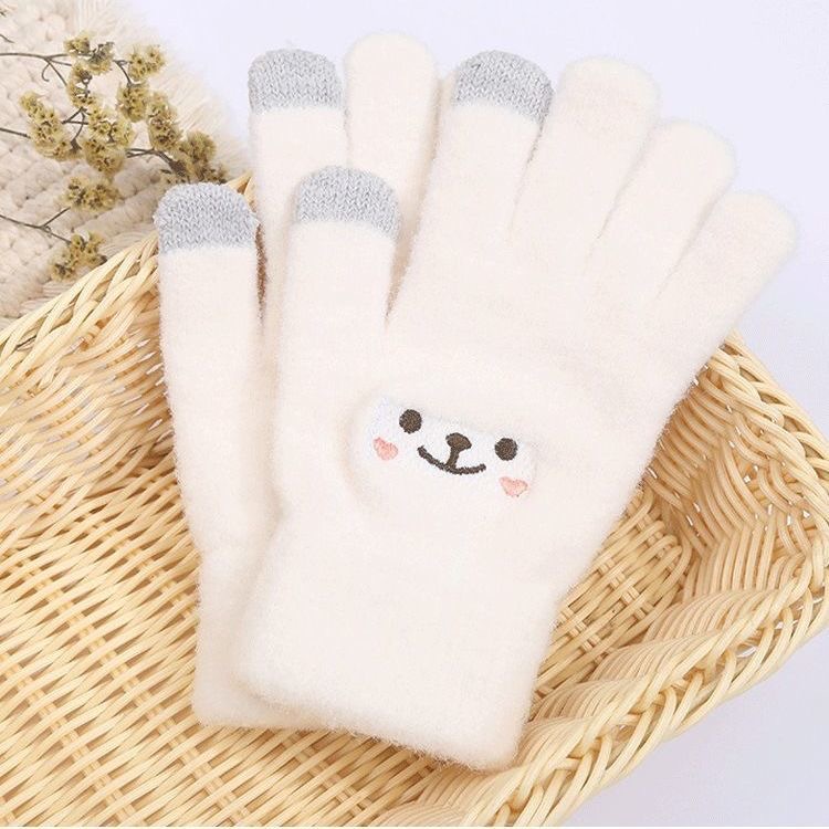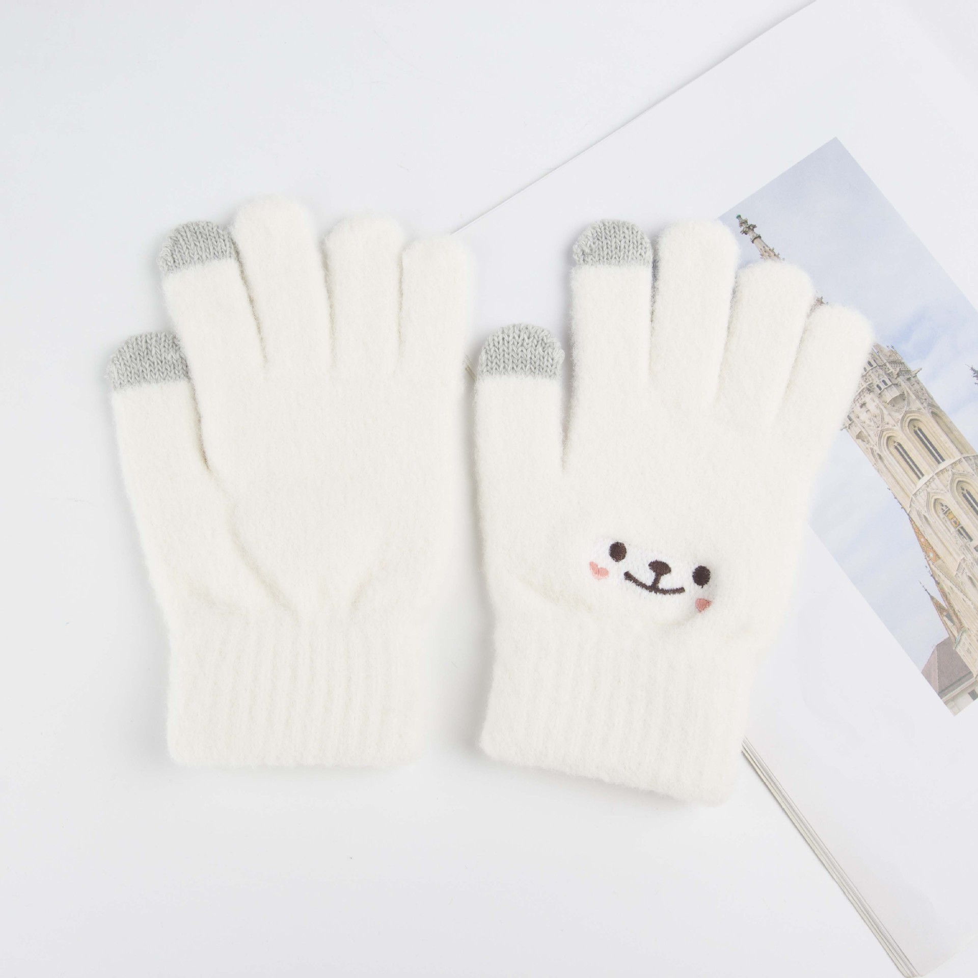 장갑 겨울 여자의 따뜻한 귀여운 모직 새로운 모조 밍크 벨벳 니트 자수 귀여운 손가락 터치 스크린 스마일 장갑