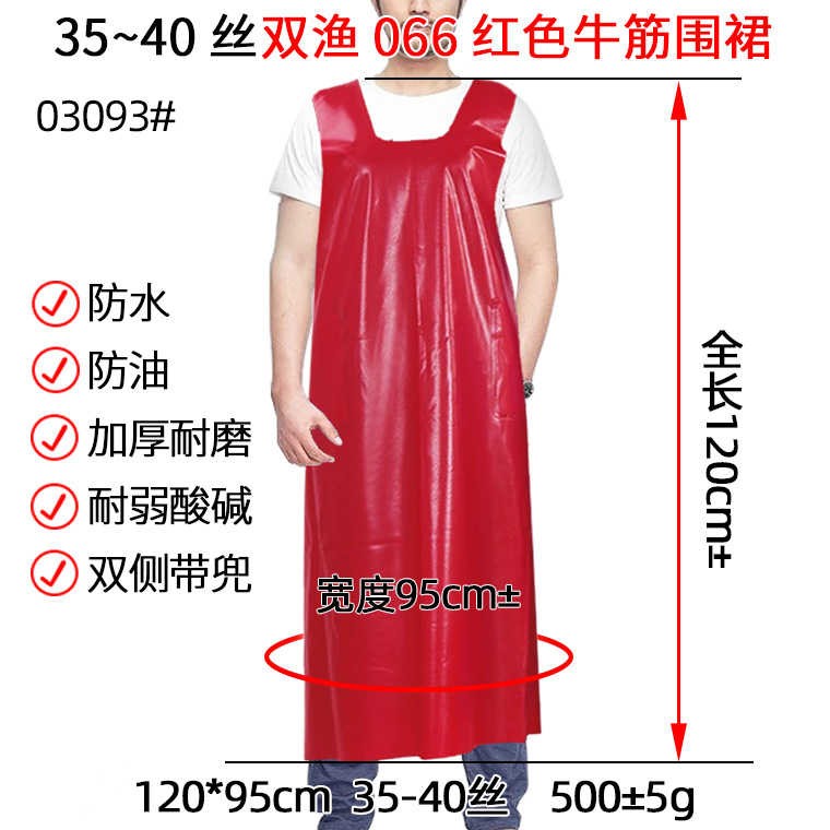 shuangyu大双肩背带牛筋pvc围裙红色--03093#