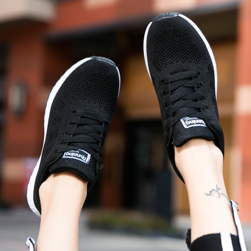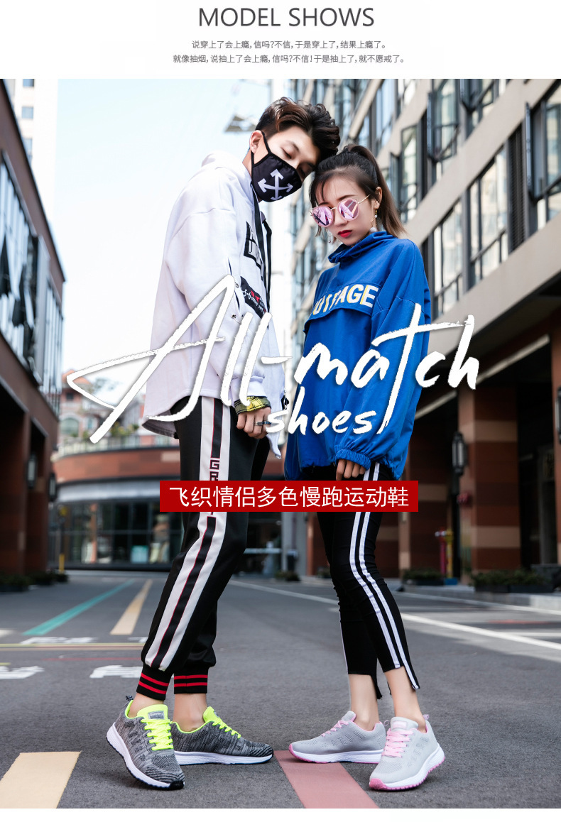 2021跨境新款运动鞋女士轻底透气学生跑步鞋飞织网面休闲男运动鞋