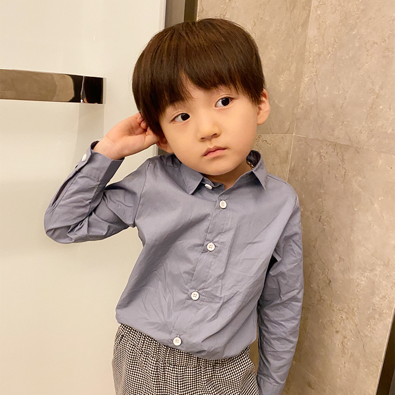 소년 솔리드 컬러 옷깃 셔츠 봄 한국 스타일 아동 패션 셔츠 아동 의류 탑 내부 도매스토어 가기