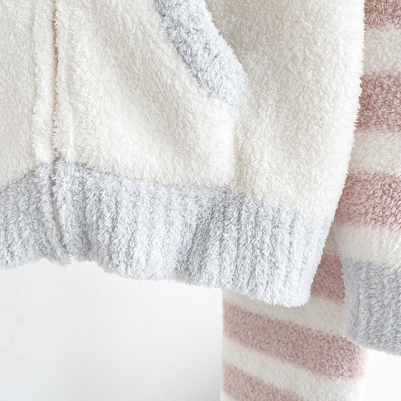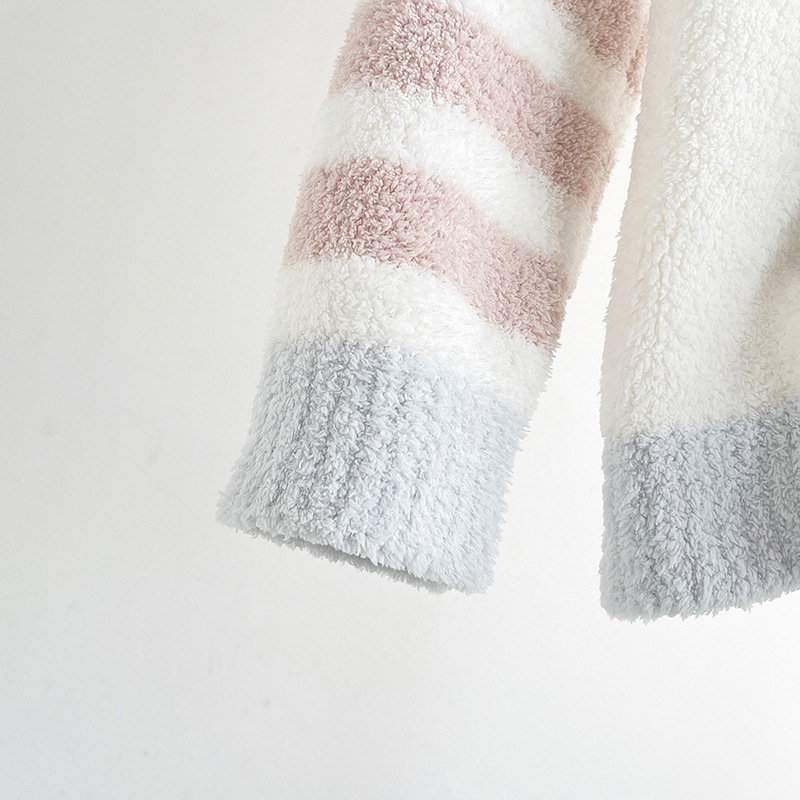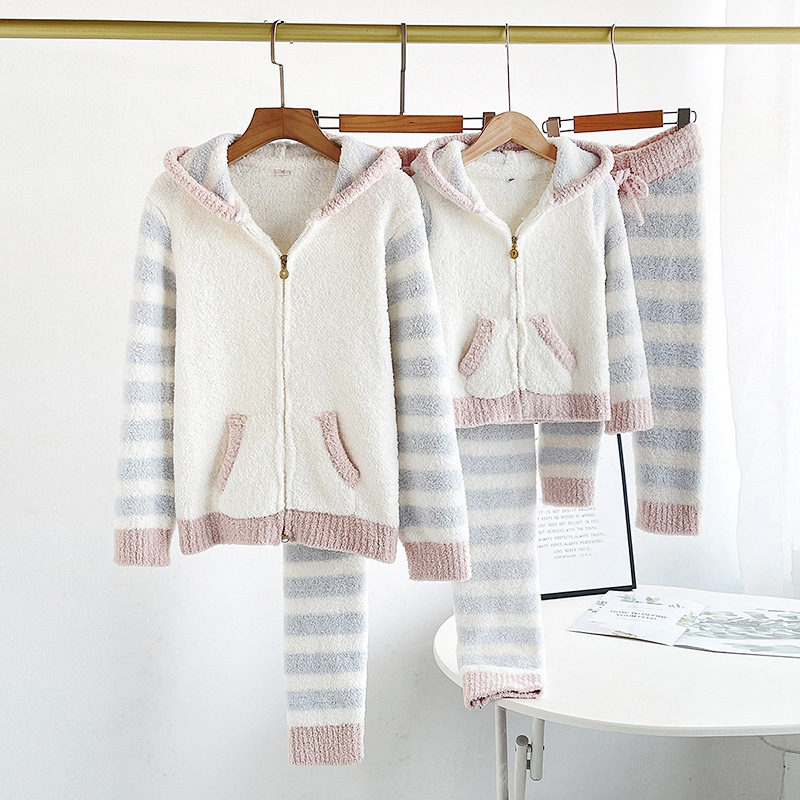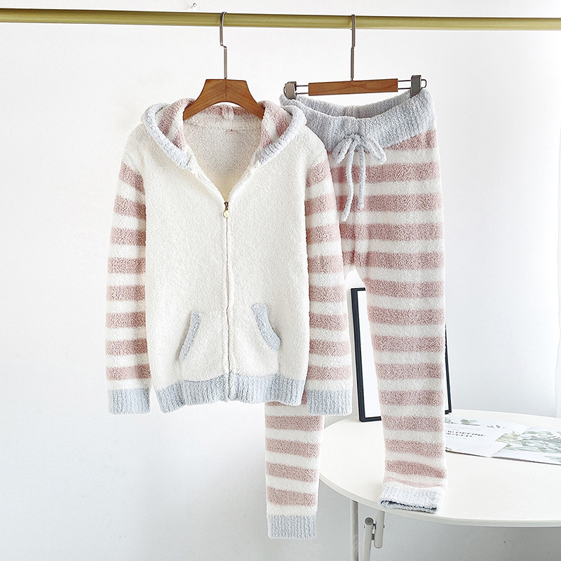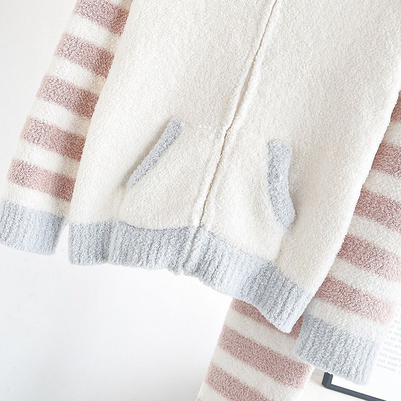 여자의 부드러운 파자마 바지 가을과 겨울 두꺼운 하프 사이드 벨벳 따뜻한 스트라이프 지퍼 후드 가디건 가정 의류 세트