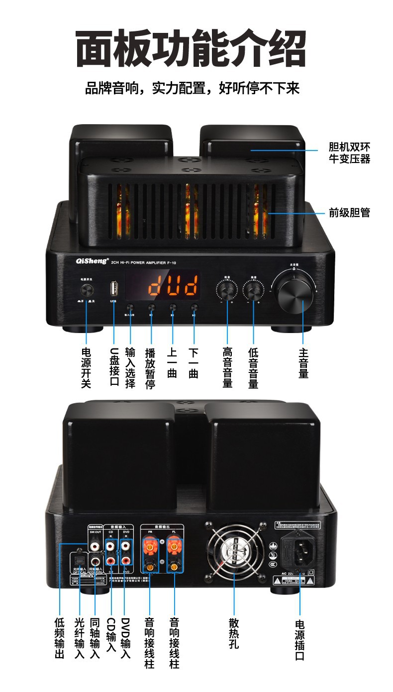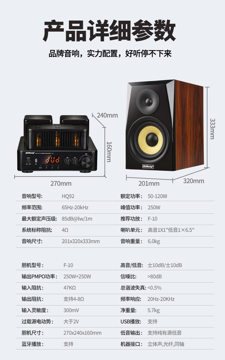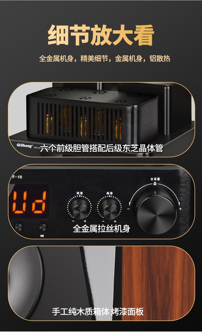 Qisheng 전문 담낭 기계 사운드 하이파이 조합 전자 튜브 파워 앰프 발열 수준 데스크탑 책장 액티브 서브 우퍼 박스스토어 가기