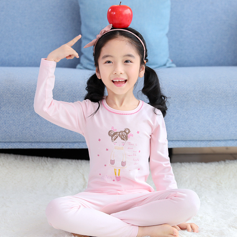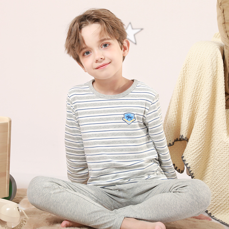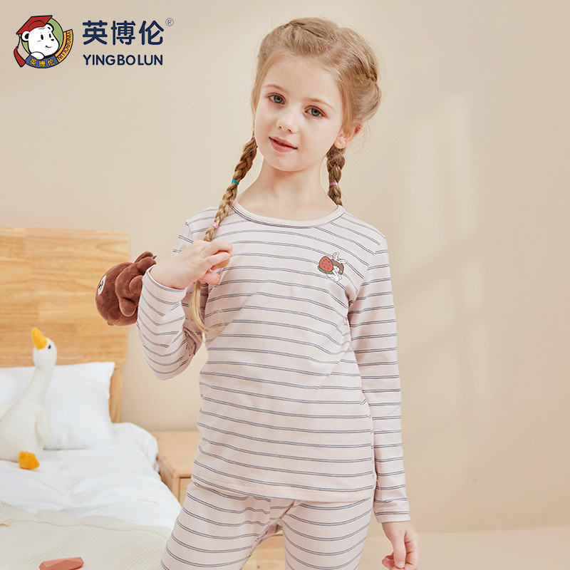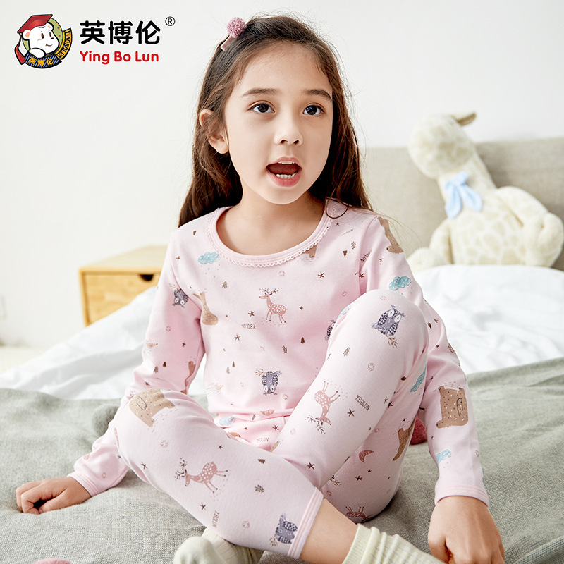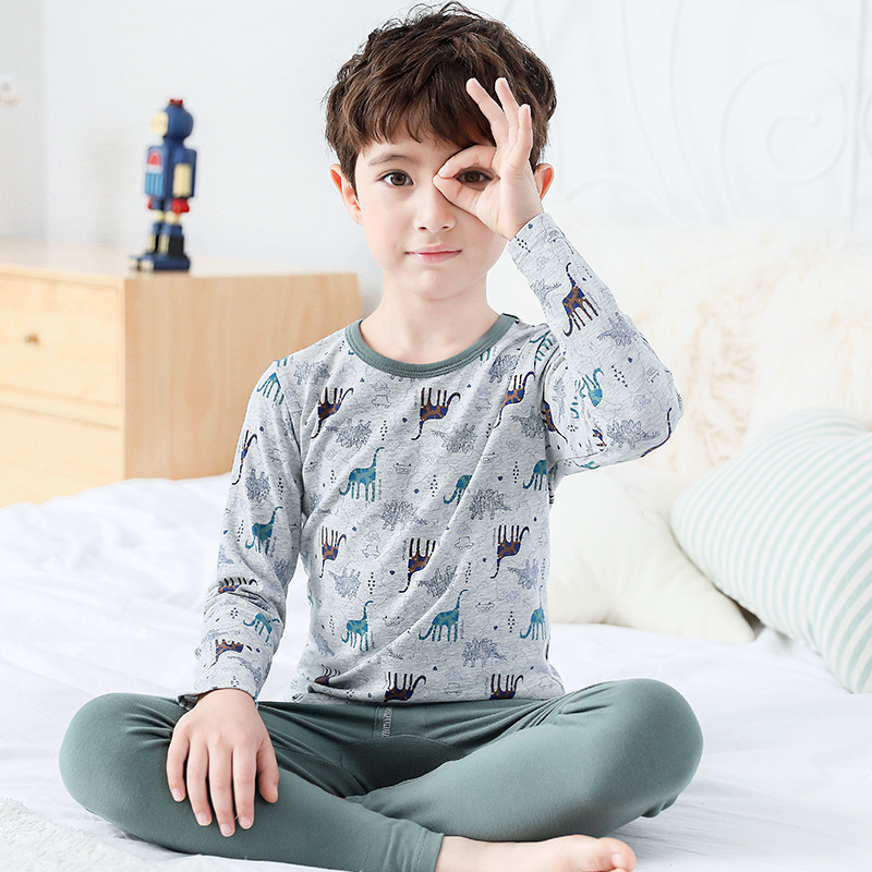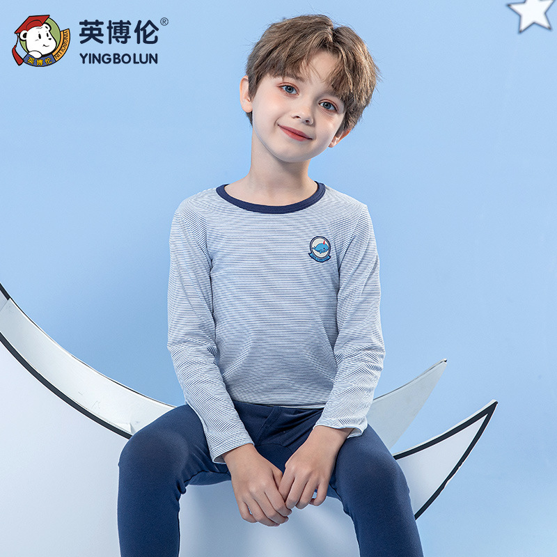 Yingbolun 가을과 겨울 소년 라이크라 속옷 세트 어린이 가을 옷과 긴 바지 큰 어린이 작은 소년 얇은 면 스웨터