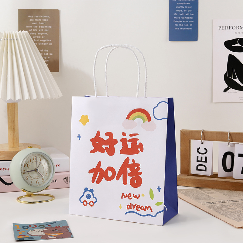 만화 선물 가방 창조적 인 텍스트 휴일 선물 가방 졸업 시즌 사탕 비스킷 선물 포장 휴대용 종이 가방스토어 가기