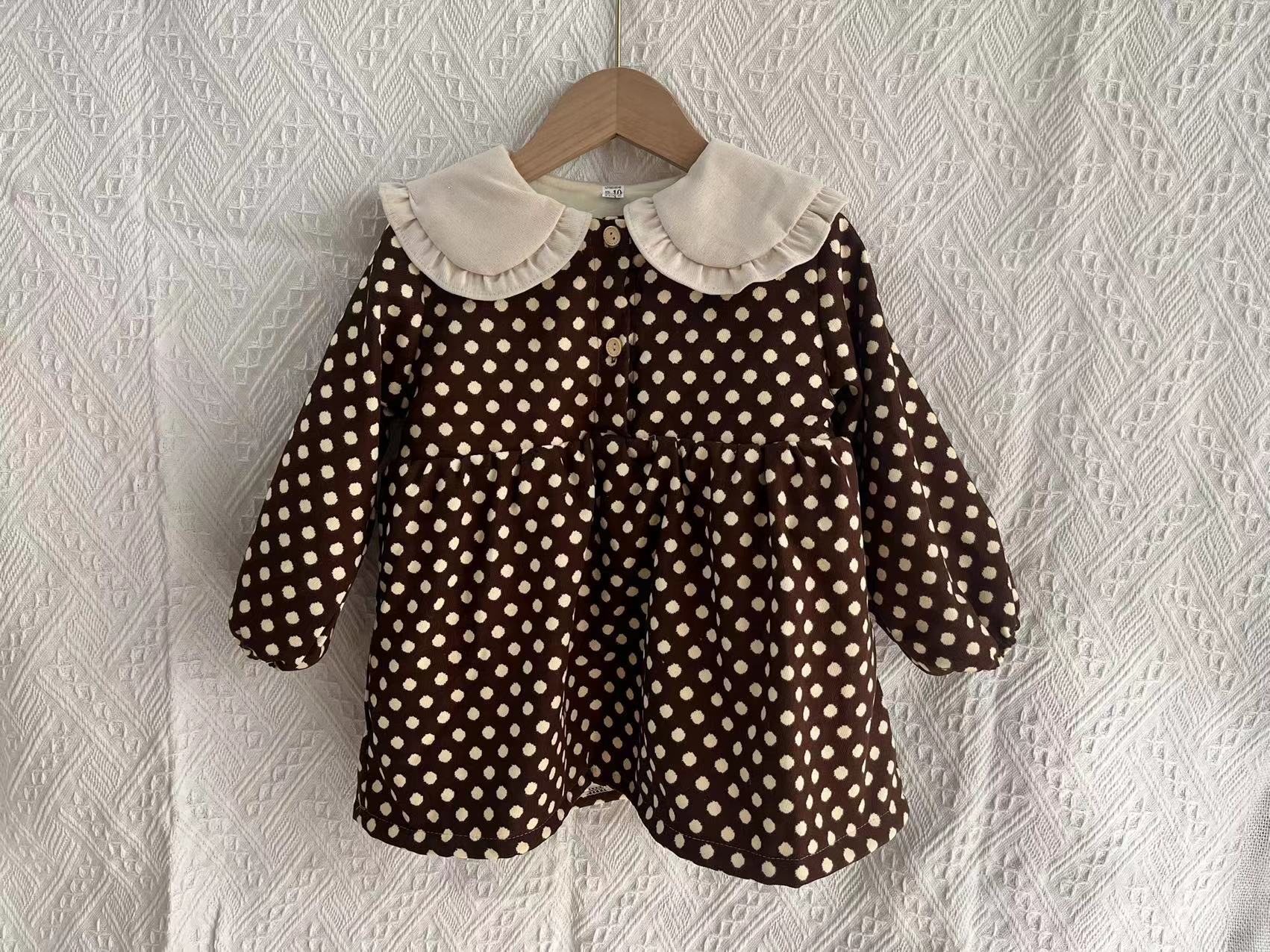 아동 의류 2021 가을과 겨울 소녀 물방울 무늬 원피스 두꺼운 따뜻한 아기 서양식 옷 34 세 아기 공주 치마스토어 가기