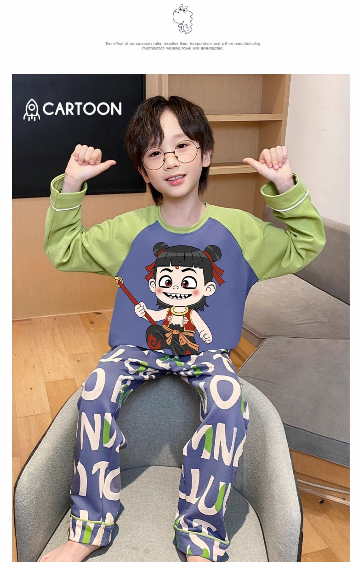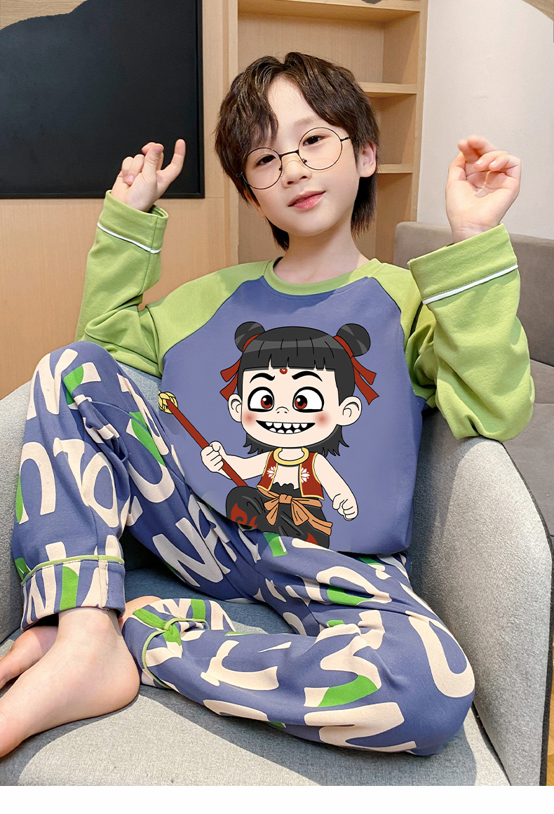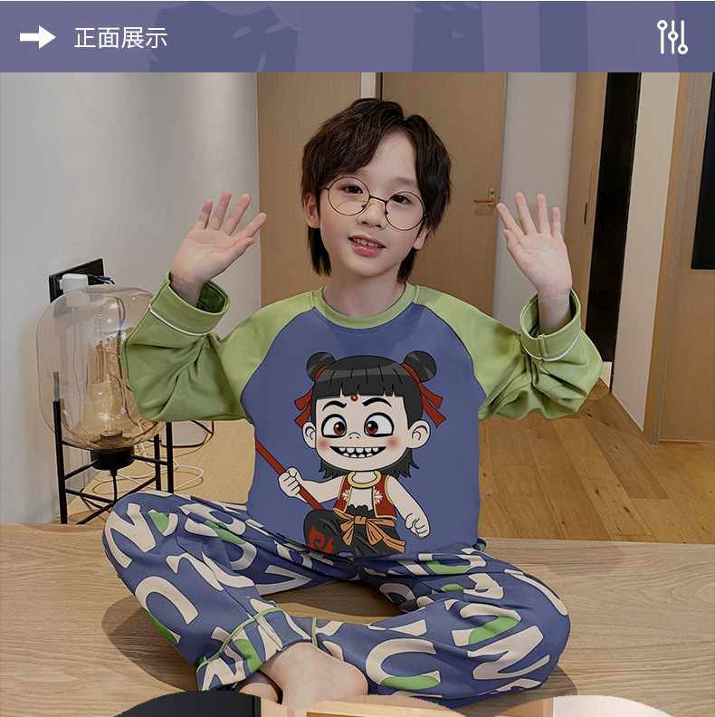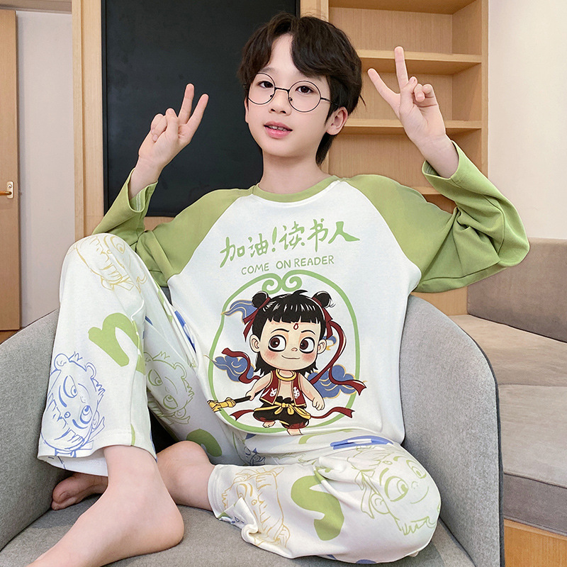 어린이 잠옷 소년 만화 봄과 가을 긴팔 새 얇은 면 소년 어린이 중 큰 어린이 부모 자식 홈 옷스토어 가기