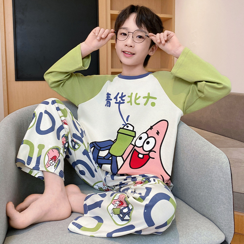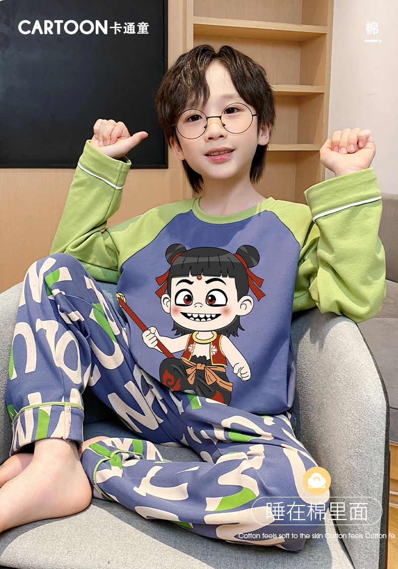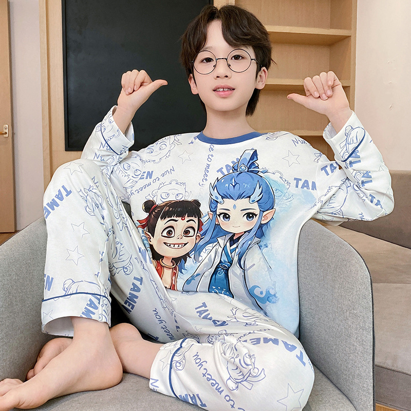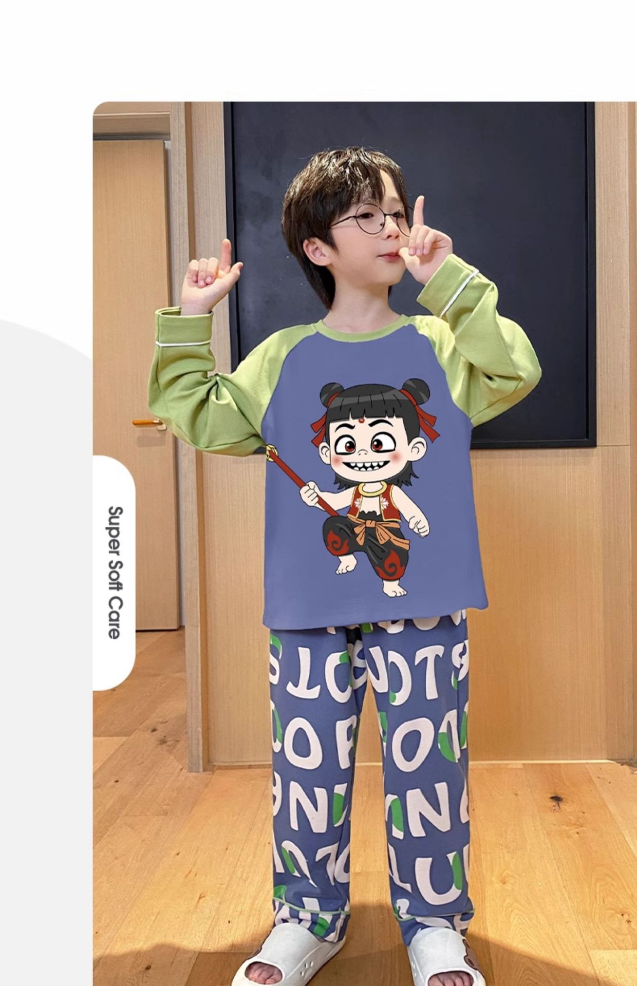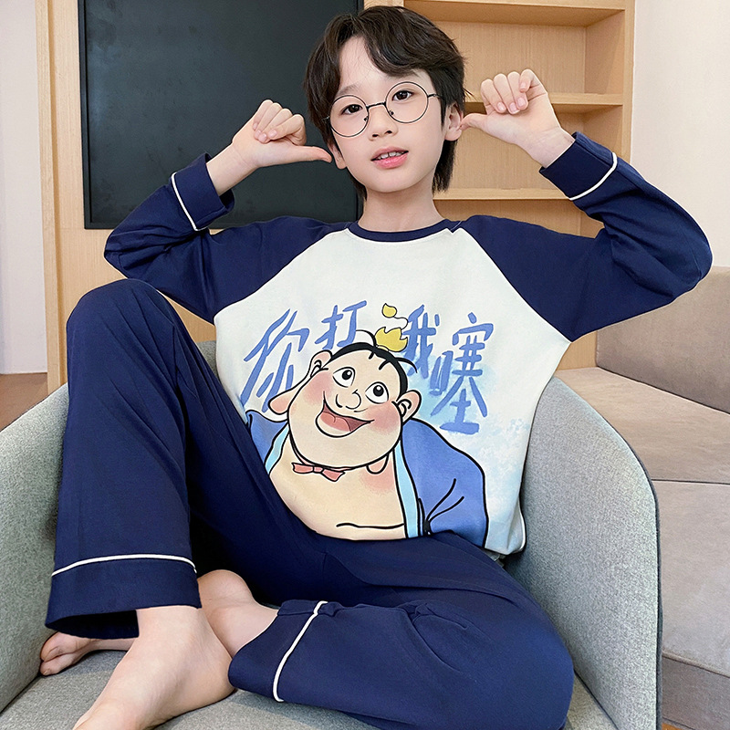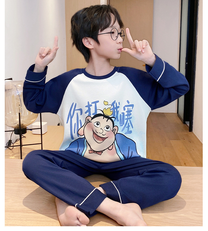 어린이 잠옷 소년 만화 봄과 가을 긴팔 새 얇은 면 소년 어린이 중 큰 어린이 부모 자식 홈 옷