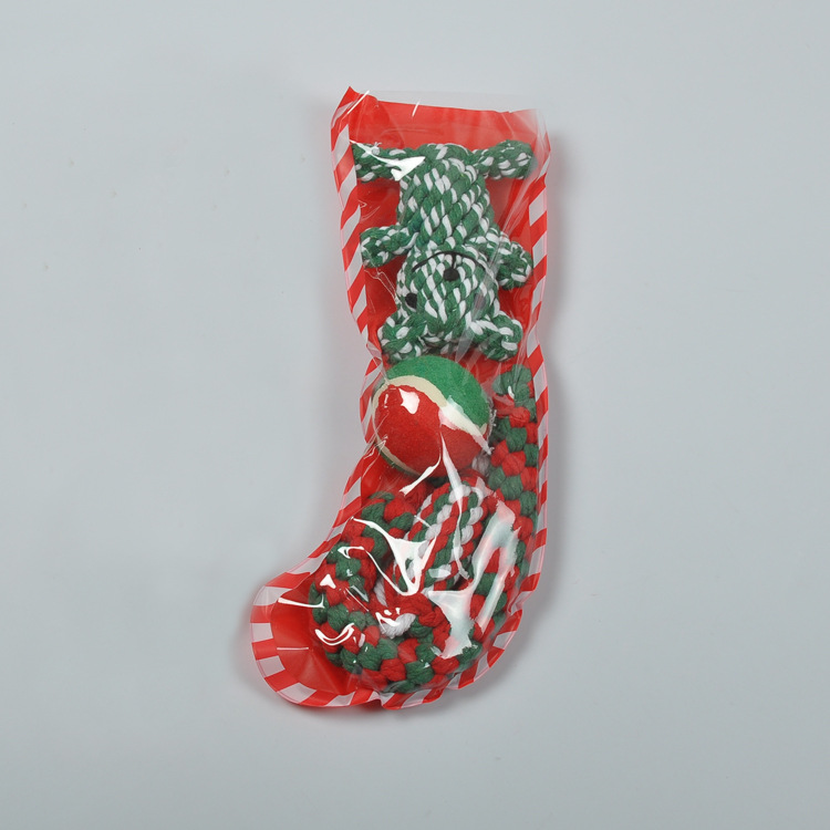 새로운 크리스마스 세트 수제 짠 코튼 로프 애완 동물 개 장난감 어금니 치아 청소 재고 도매 개 물린 장난감스토어 가기