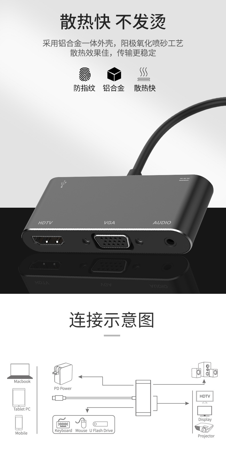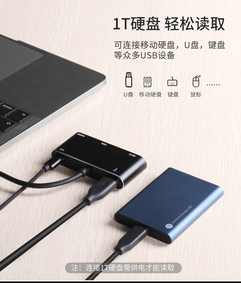 usb3.0Mac笔记本电脑多功能集线器 hdmi高清五合一typec扩展坞
