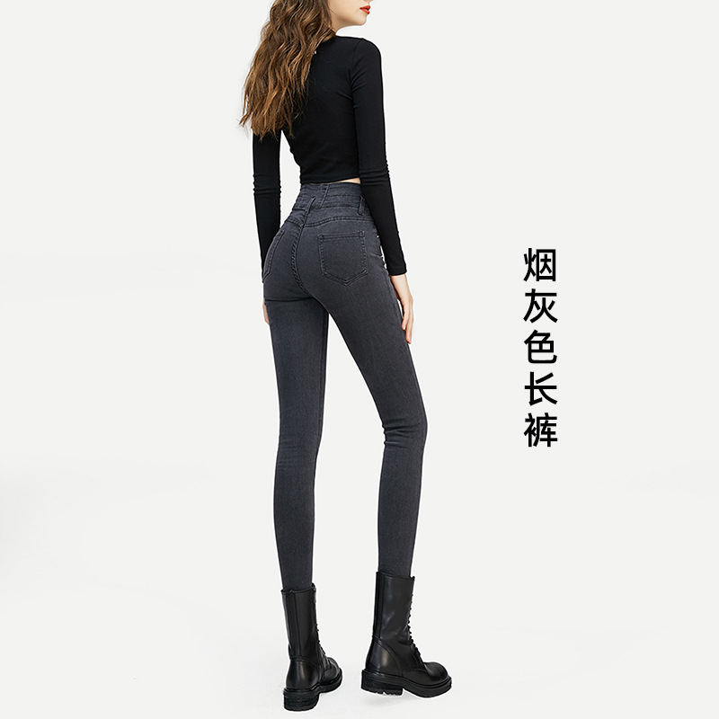 연회색 하이웨이스트 여성용 청바지 2025 봄 신축성 다용도 슬림핏 슬림한 연필형 타이트 팬츠스토어 가기