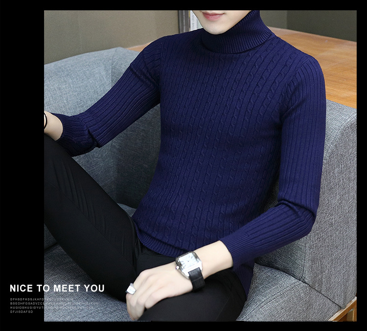 남성용 터틀넥 스웨터 슬림핏베이스 셔츠 트위스트 니트 긴팔 한국식 가을과 겨울 청소년 남성용 단색 스웨터