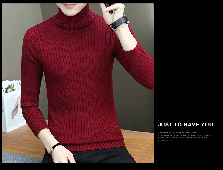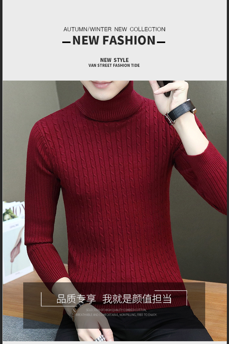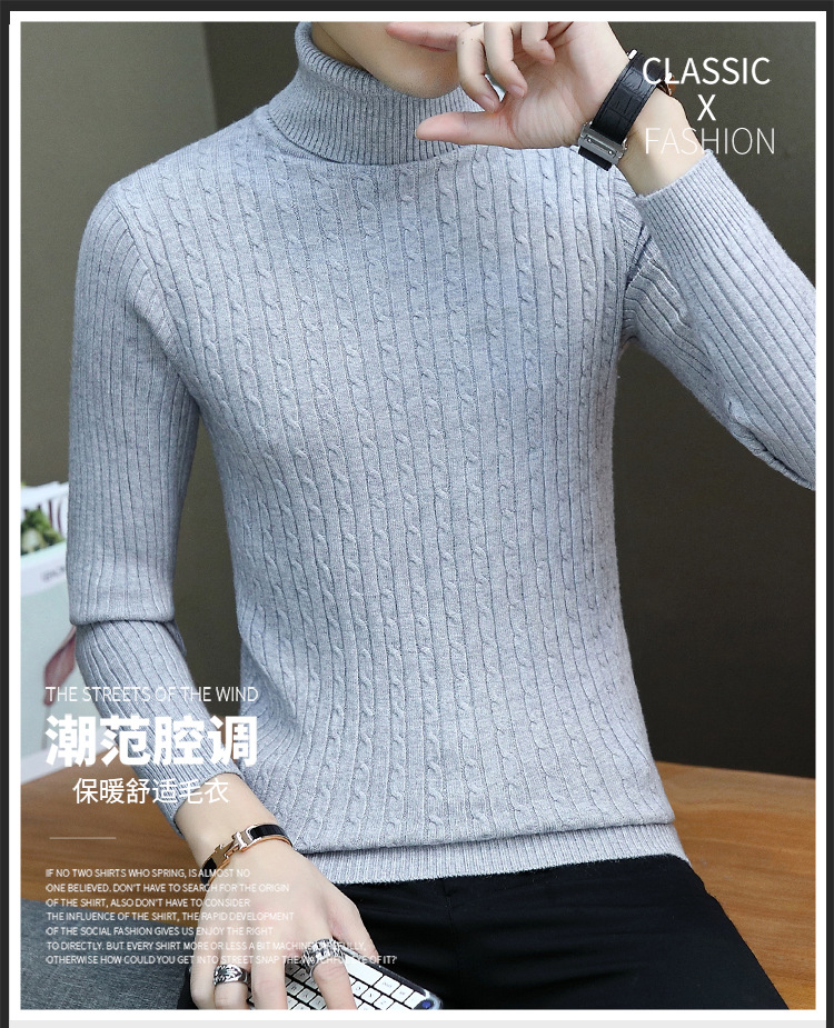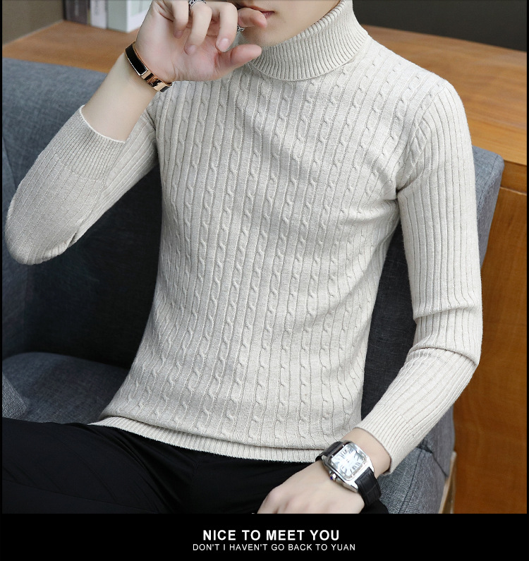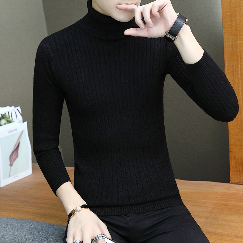 남성용 터틀넥 스웨터 슬림핏베이스 셔츠 트위스트 니트 긴팔 한국식 가을과 겨울 청소년 남성용 단색 스웨터스토어 가기
