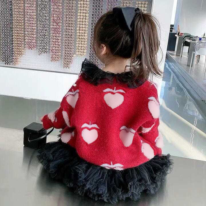 여아 니트 가디건 2023 봄과 가을 새로운 어린이 가을 탑 베이비 V-넥 스웨터 여아 웨스턴 스타일 코트