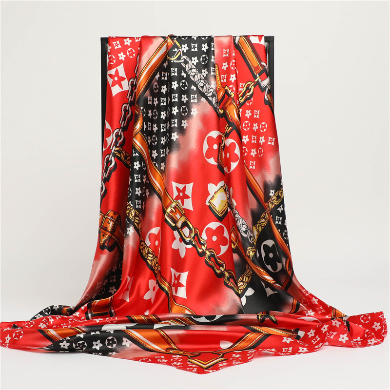 기질 기질은 실크 스카프 유럽과 미국 스타일 체인 스카프 패션 대형 사각형 90cm 컬러 실크 목도리 여성용 터번