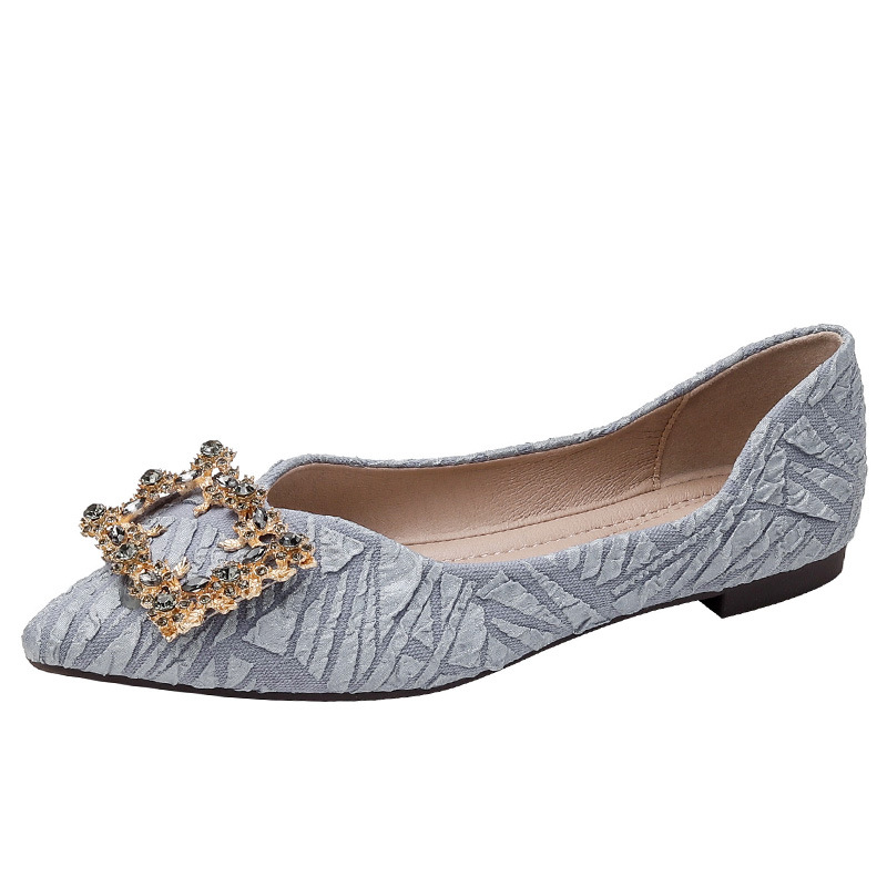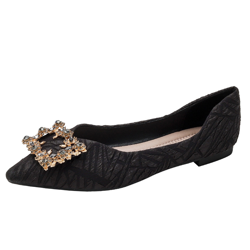 2023 새로운 한국 스타일 라인 석 사각 버클 얕은 입 뾰족한 플랫 힐 부드러운 바닥 모든 일치 플랫 향기로운 스타일 플러스 사이즈 여성 싱글 신발