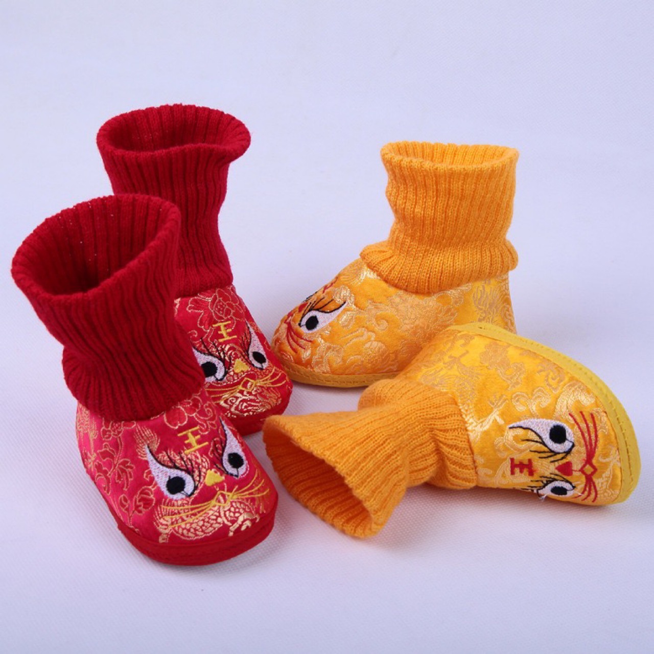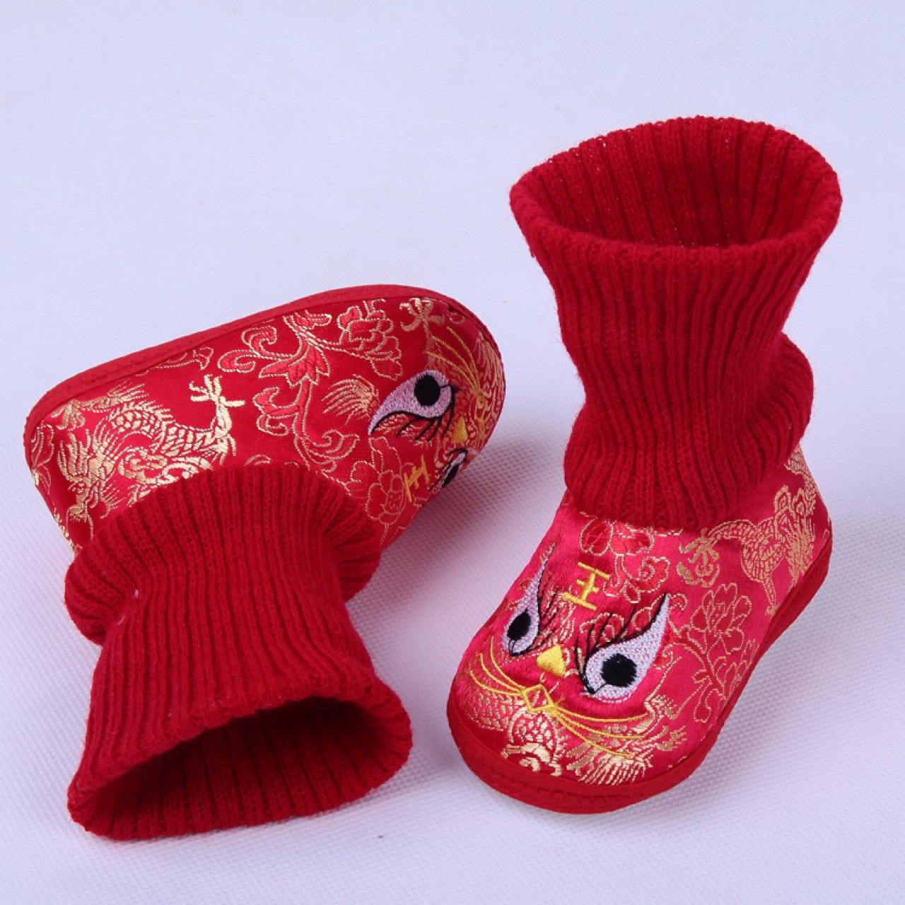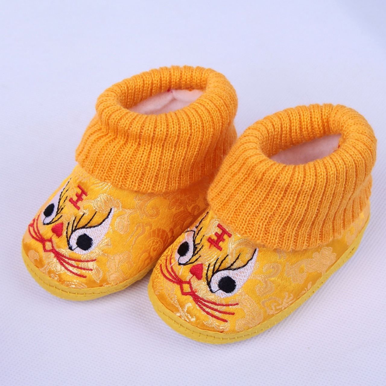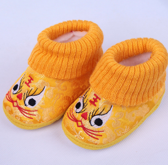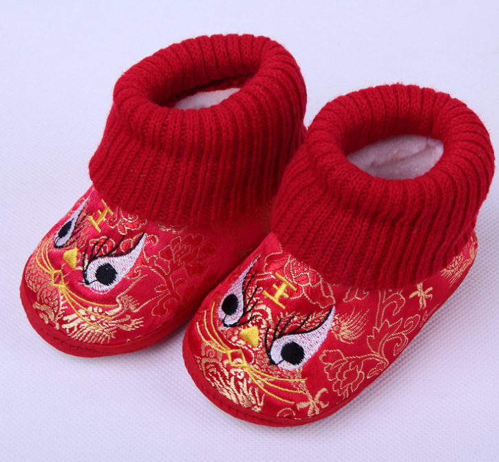 가을과 겨울 새로운 0-12 개월 부드러운 바닥 손 스티치 호랑이 머리 신발 따뜻한 통기성 실내 빨간 호랑이 머리 신발