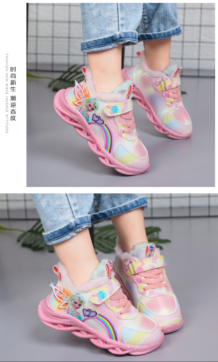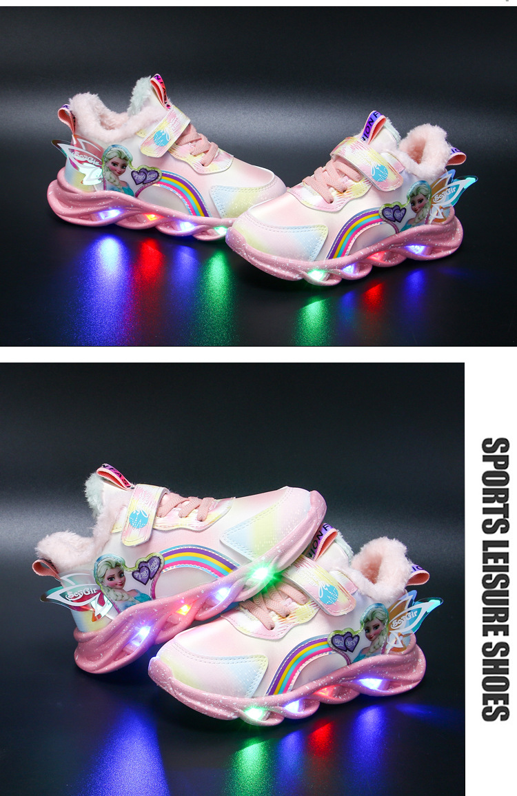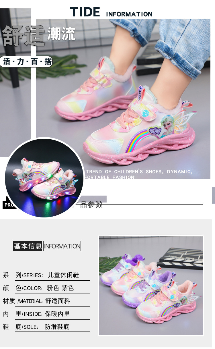 도매 조명 내장 여아 신발 2025 가을 겨울 신상 가죽 따뜻한 아동 운동화 다용도 여아 공주 신발스토어 가기