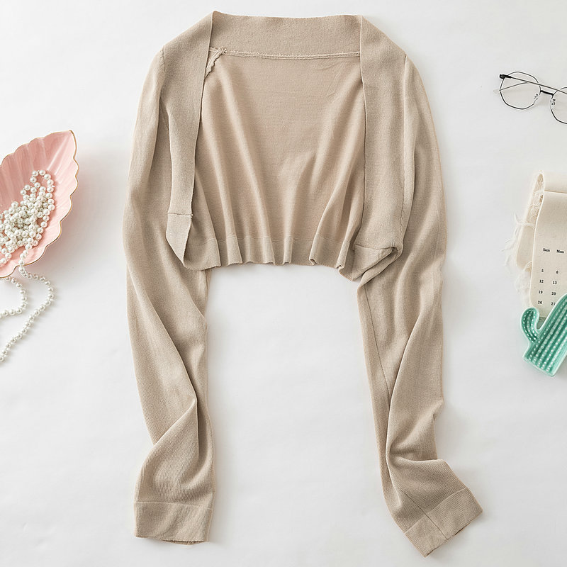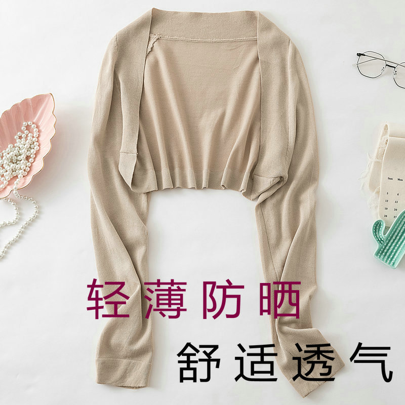 여름 울트라 쇼트 아이스 실크 자외선 차단제 스웨터 여성용 니트 가디건 슬링 스커트 숄 외부 긴 소매 작은 조끼 얇은스토어 가기