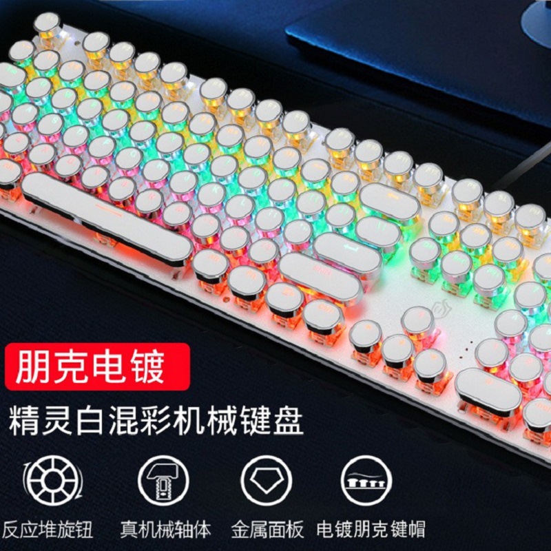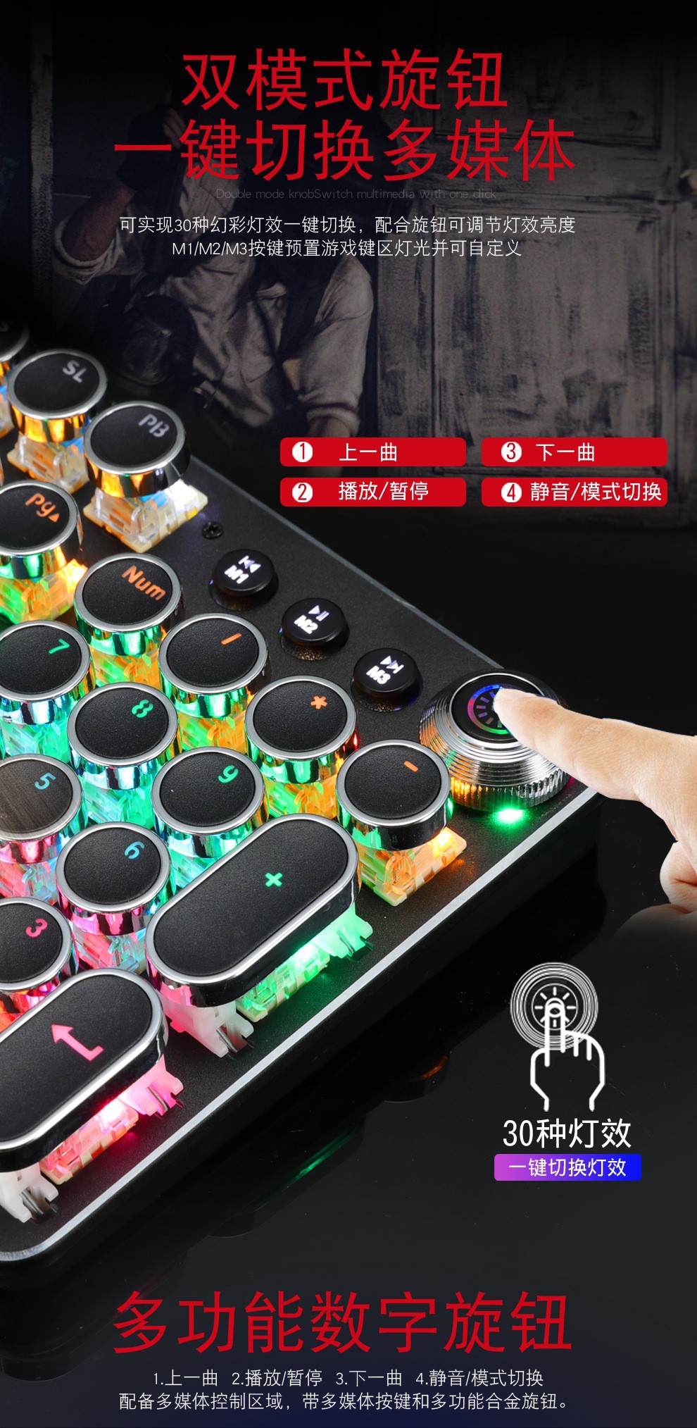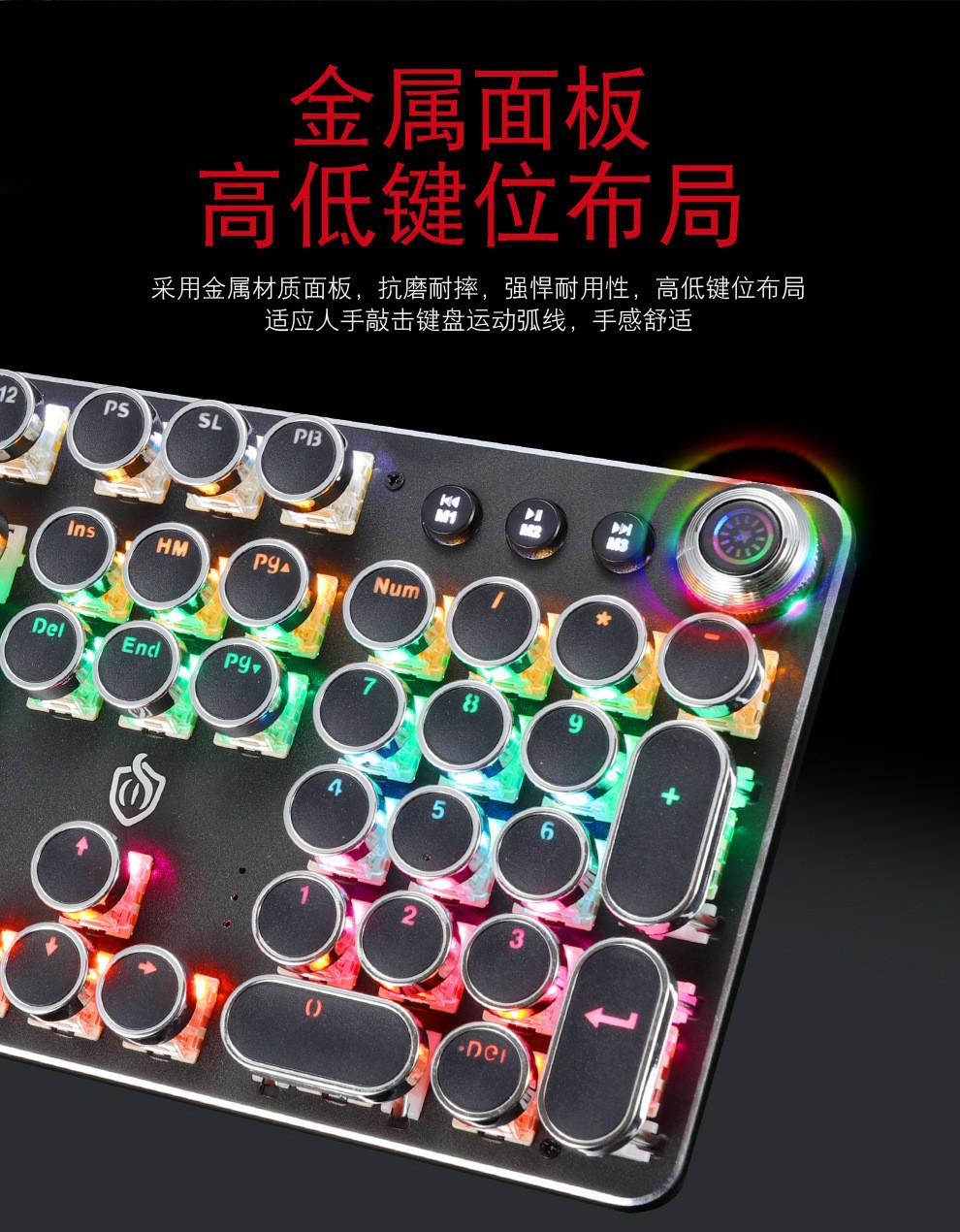 Meishang E 820A 레트로 펑크 전기도금 손잡이 빛나는 기계식 키보드 치킨 먹는 컴퓨터 게임 키보드 크로스 보더