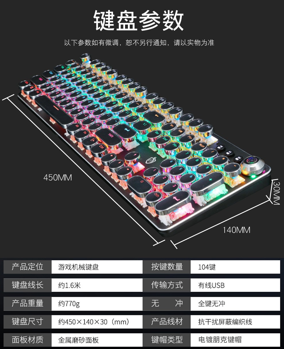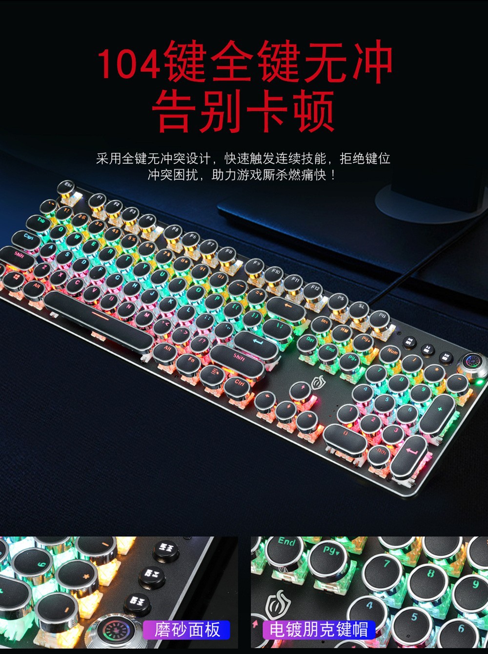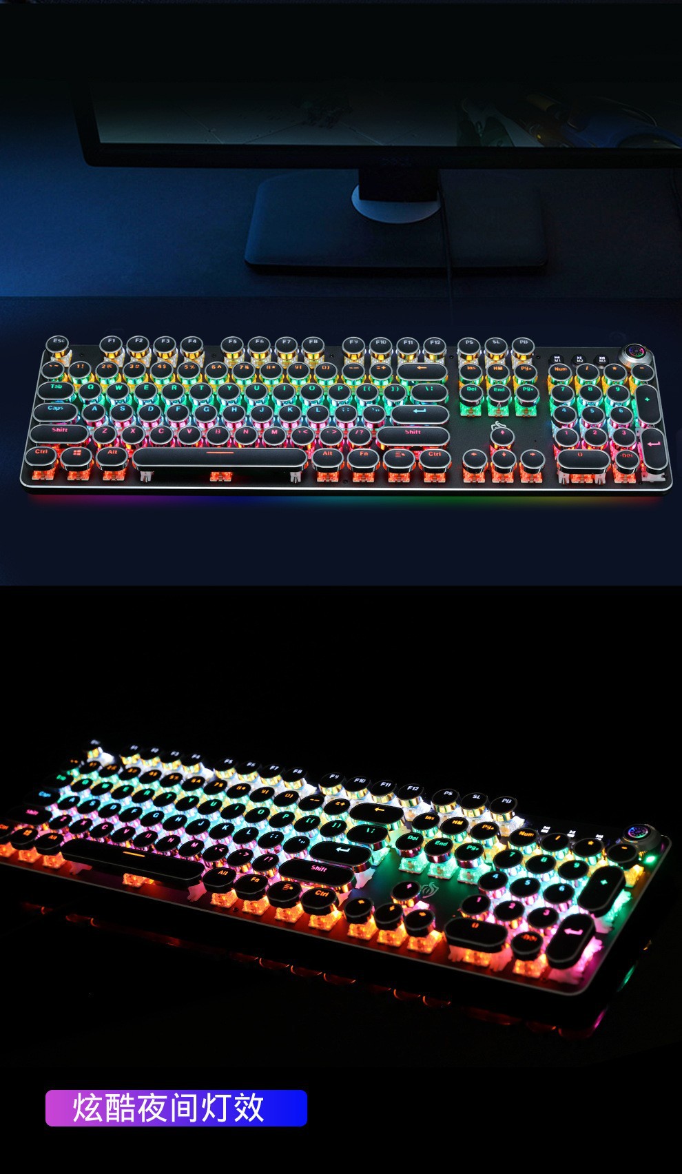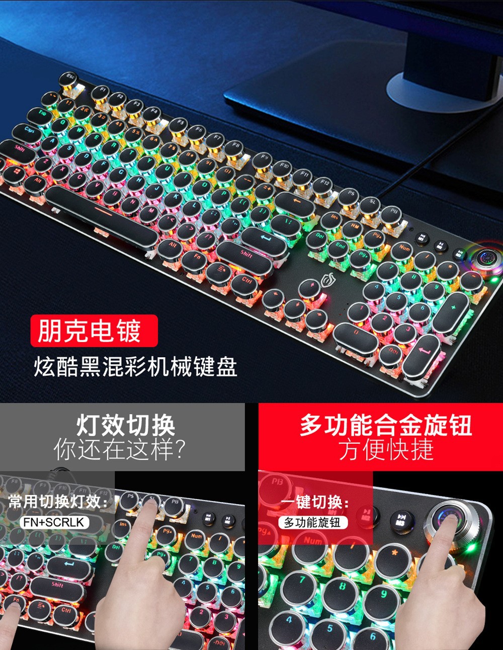 Meishang E 820A 레트로 펑크 전기도금 손잡이 빛나는 기계식 키보드 치킨 먹는 컴퓨터 게임 키보드 크로스 보더스토어 가기