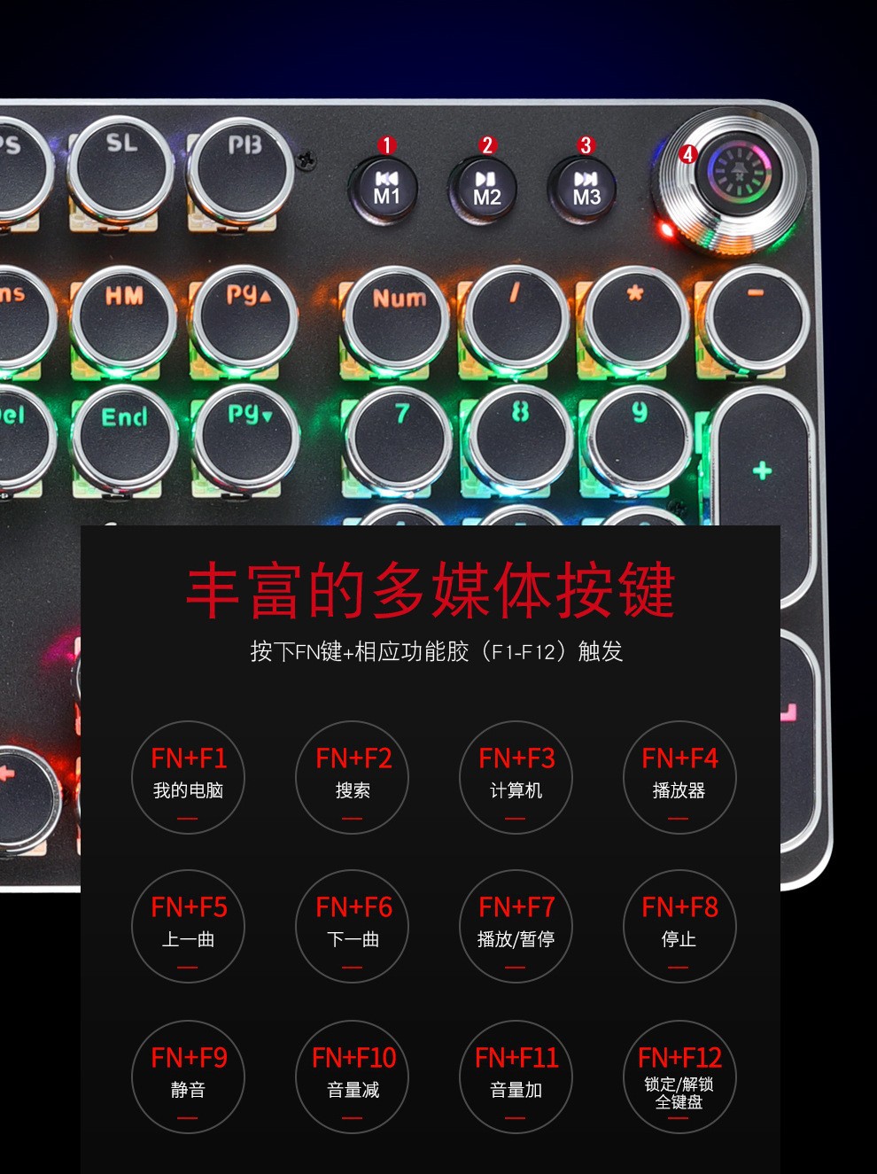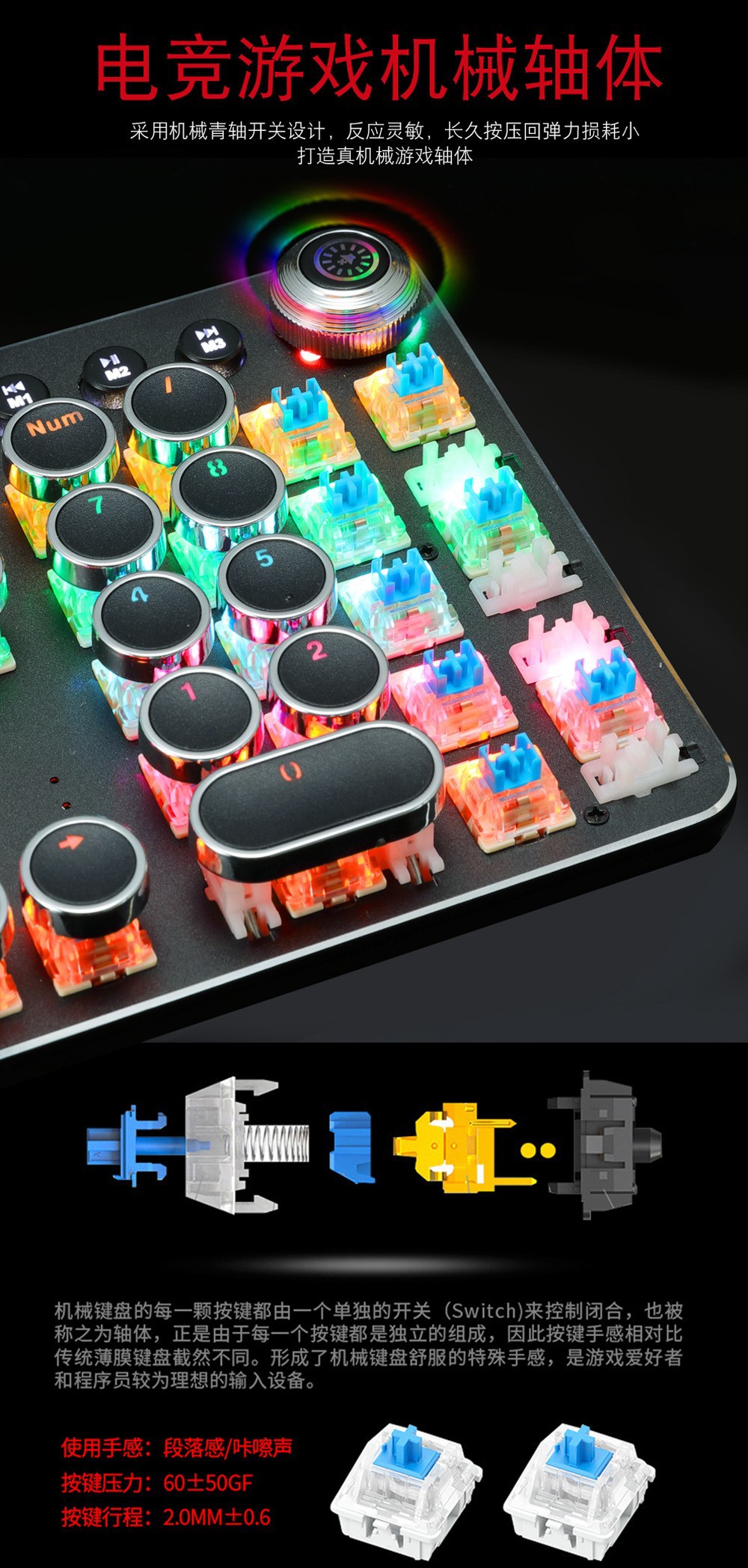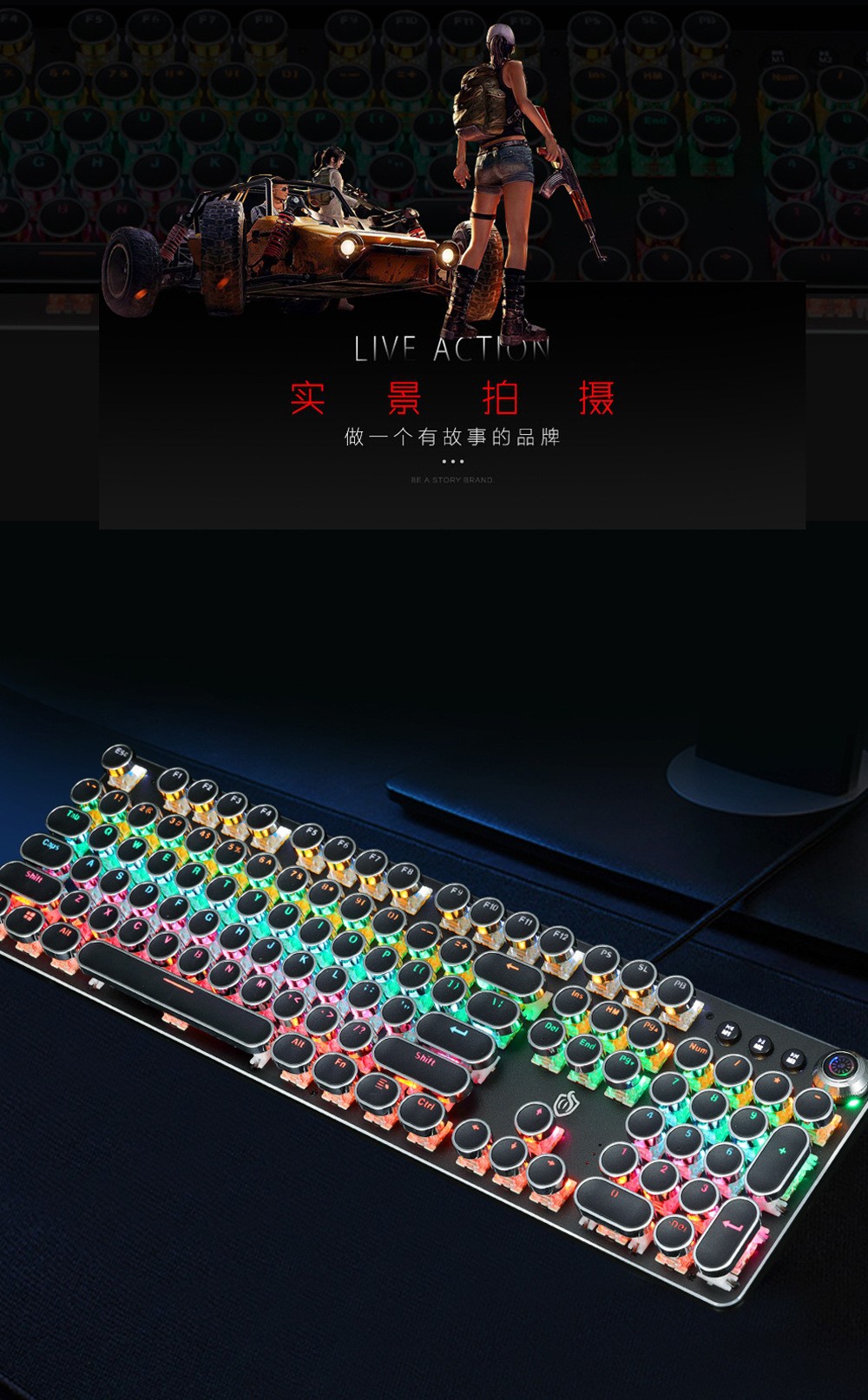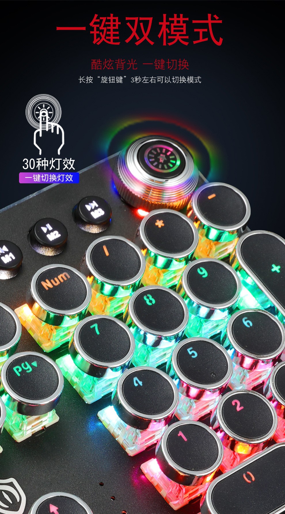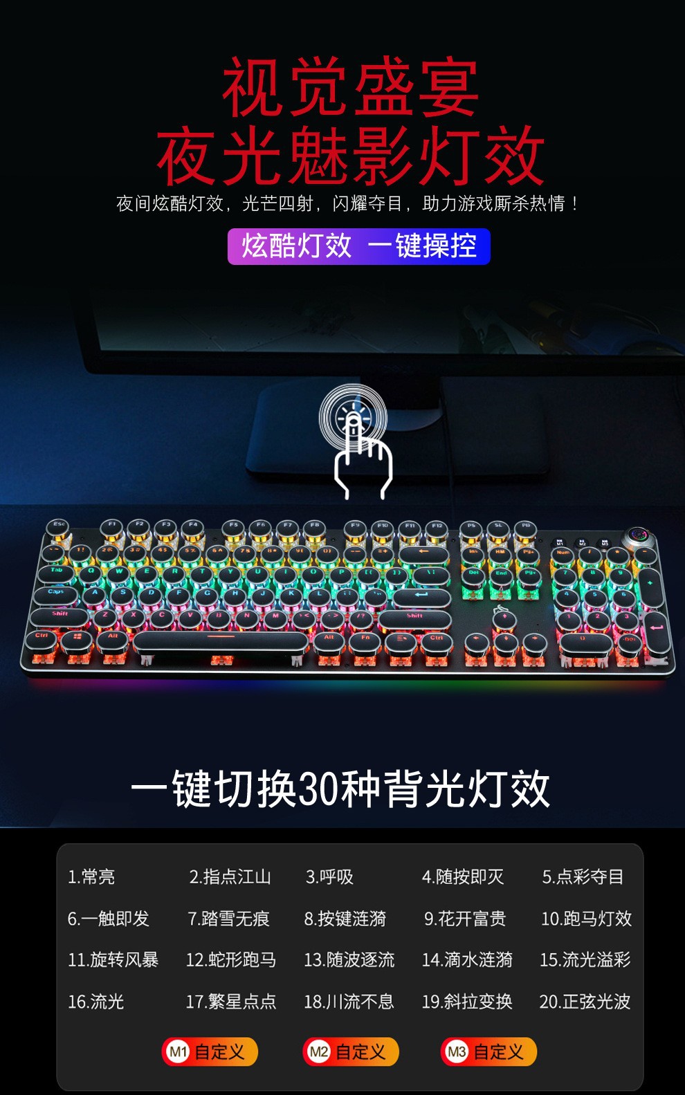Meishang E 820A 레트로 펑크 전기도금 손잡이 빛나는 기계식 키보드 치킨 먹는 컴퓨터 게임 키보드 크로스 보더스토어 가기