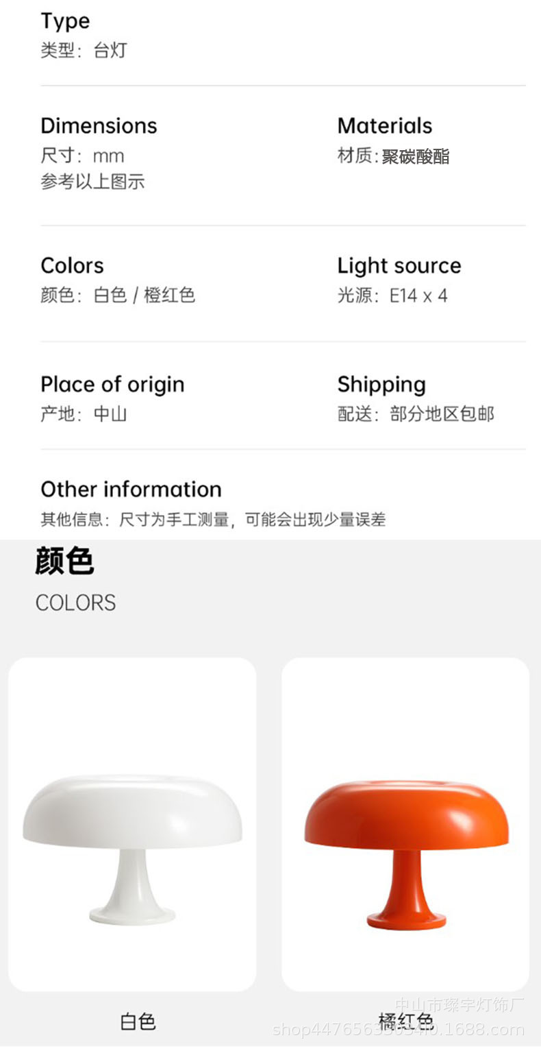 국경 간 폭발 공장 직공급 덴마크 버섯 테이블 램프 모델 룸 호텔 침실 머리맡 독서 램프 장식 램프스토어 가기