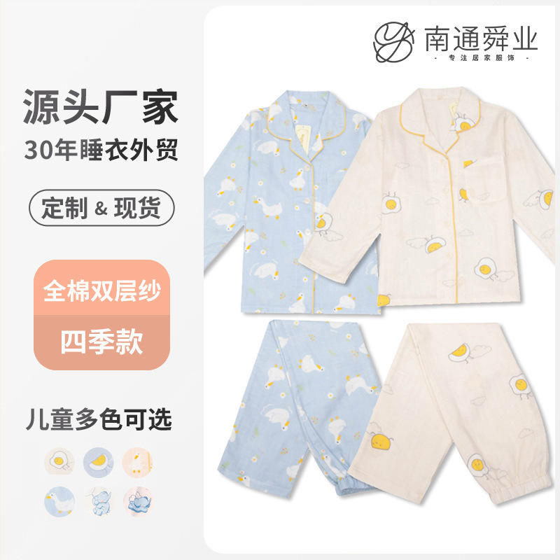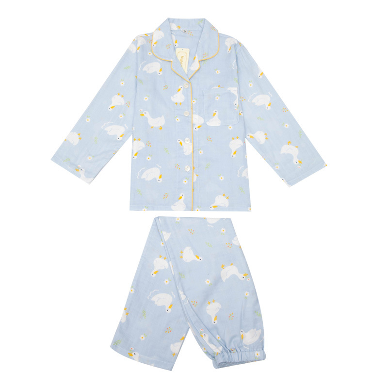 어린이 잠옷 순면 가을 대형 어린이 오리 복숭아 계란 새로운 긴 소매 가정 옷 소녀 잠옷 소년스토어 가기
