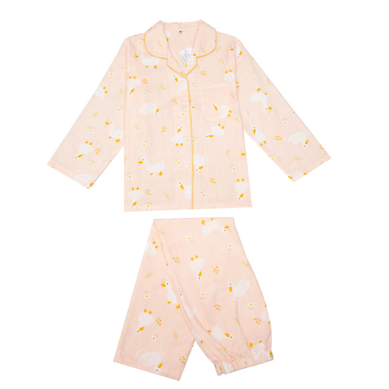 어린이 잠옷 순면 가을 대형 어린이 오리 복숭아 계란 새로운 긴 소매 가정 옷 소녀 잠옷 소년