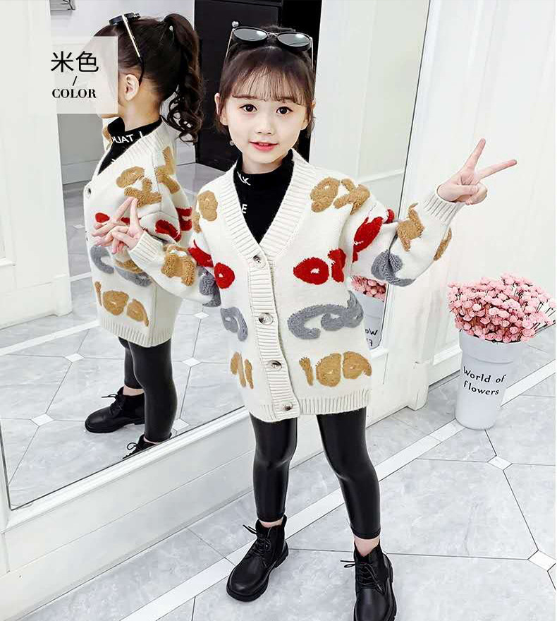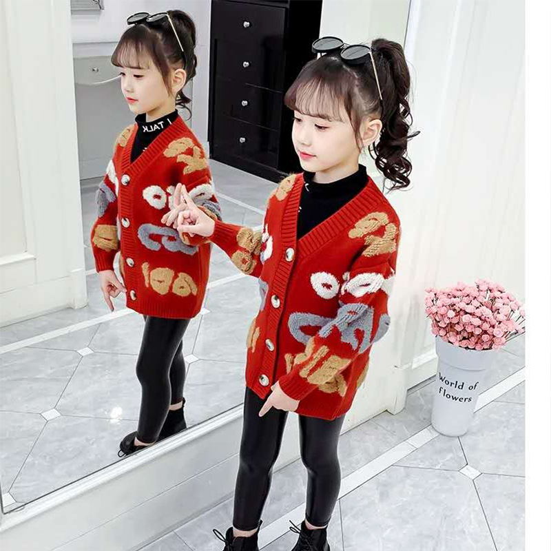 어린이 스웨터 여성 2023 봄과 가을 새로운 핫 스타일 소녀 느슨한 큰 아이 중간 길이 큰 키즈 두꺼운 카디건 재킷스토어 가기