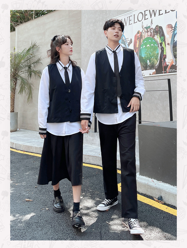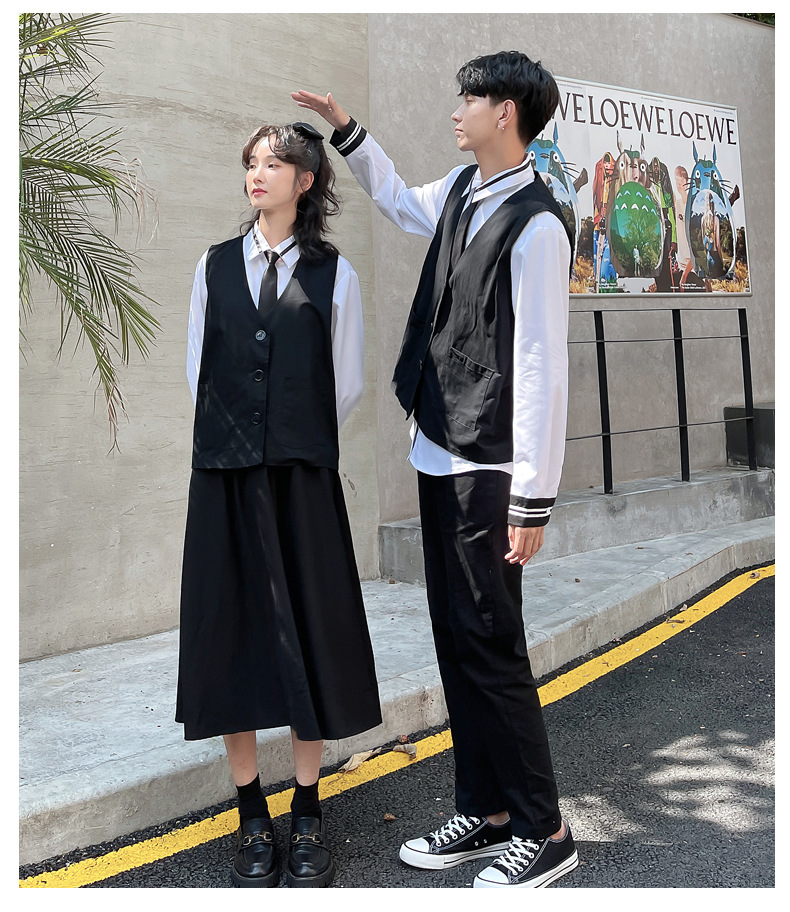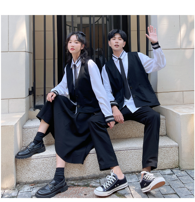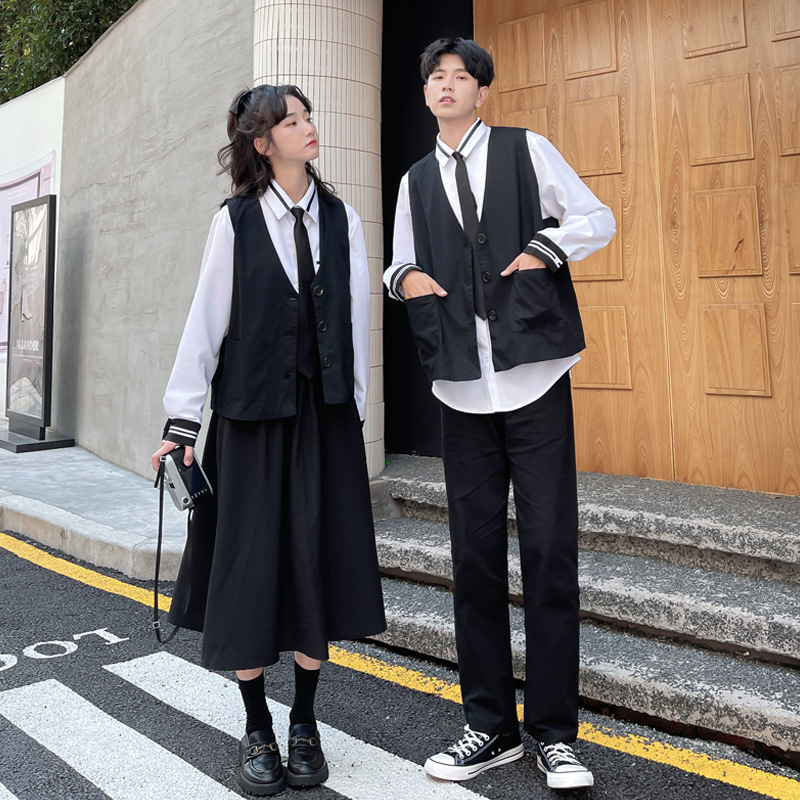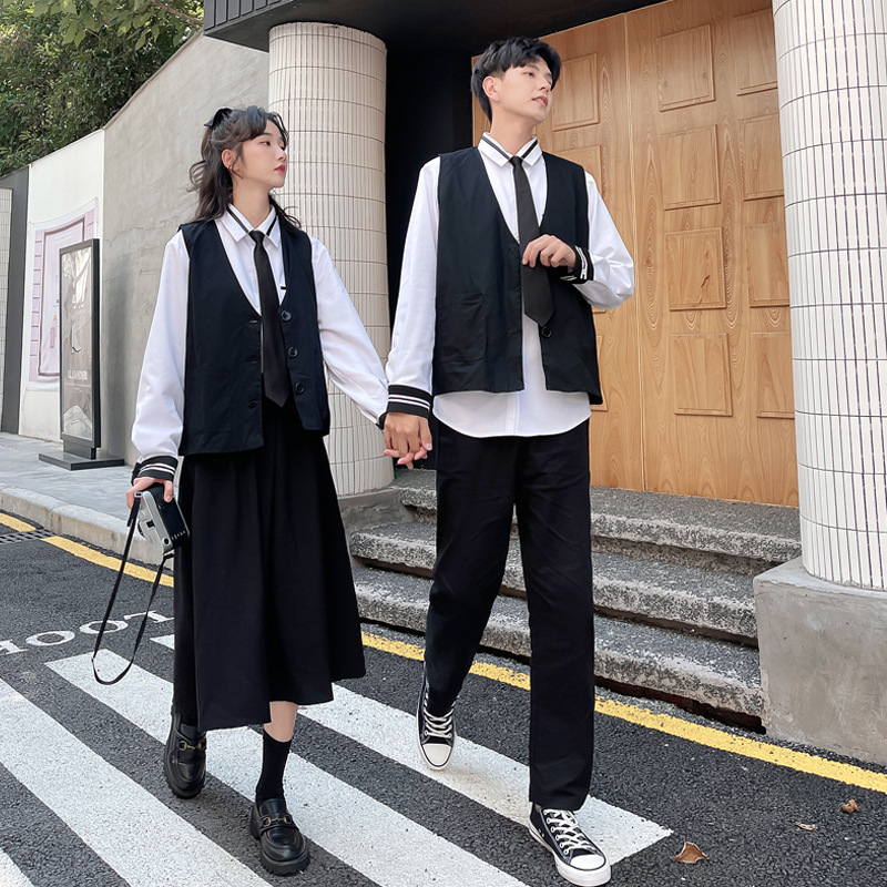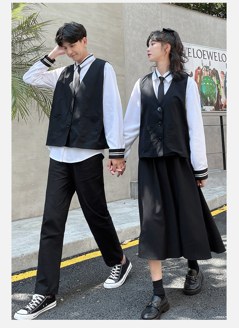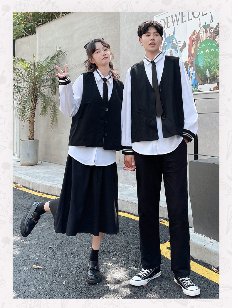 가을 2021 새로운 커플 원피스 여자의 치마 셔츠 조끼 세트 클래스 유니폼
