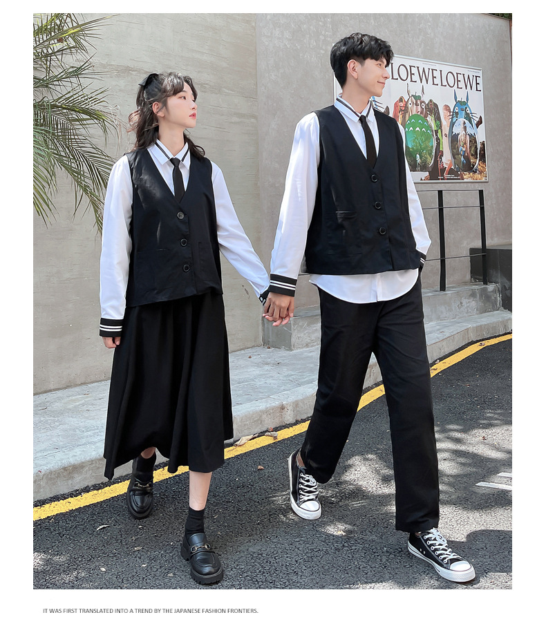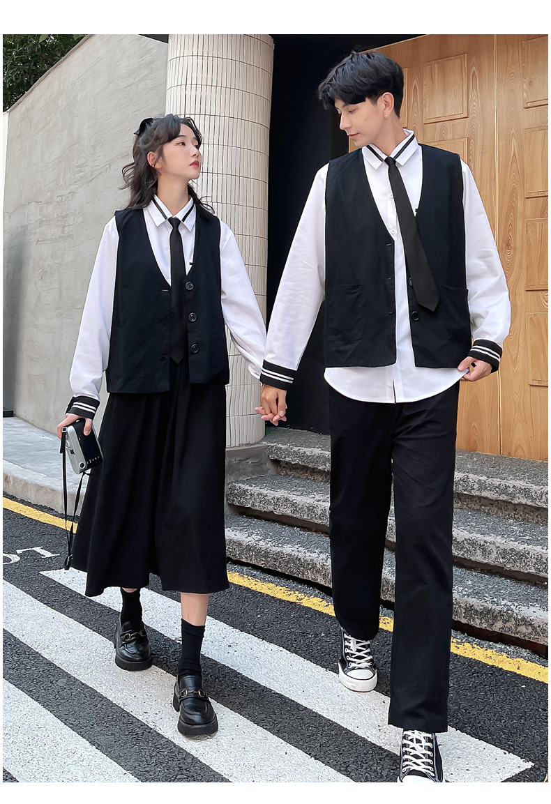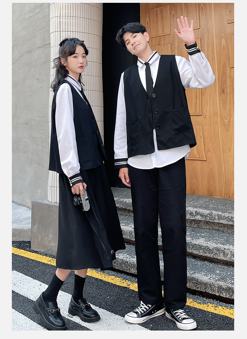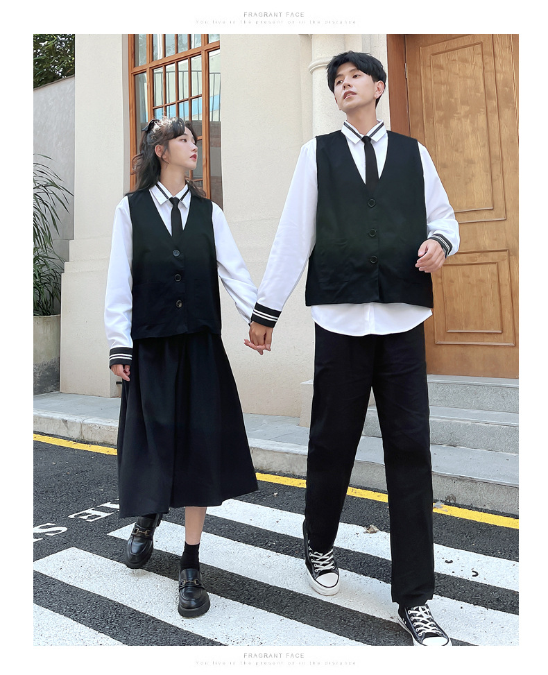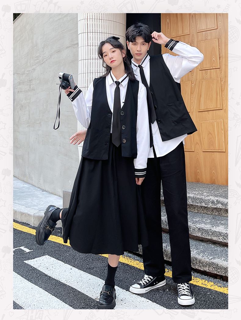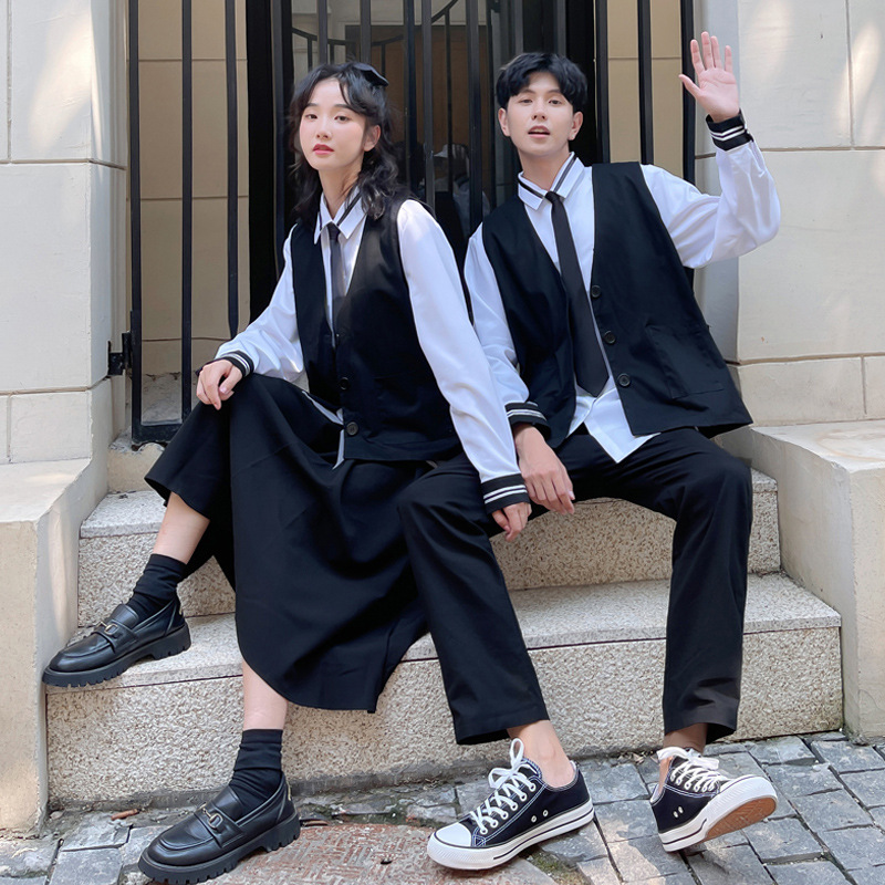 가을 2021 새로운 커플 원피스 여자의 치마 셔츠 조끼 세트 클래스 유니폼