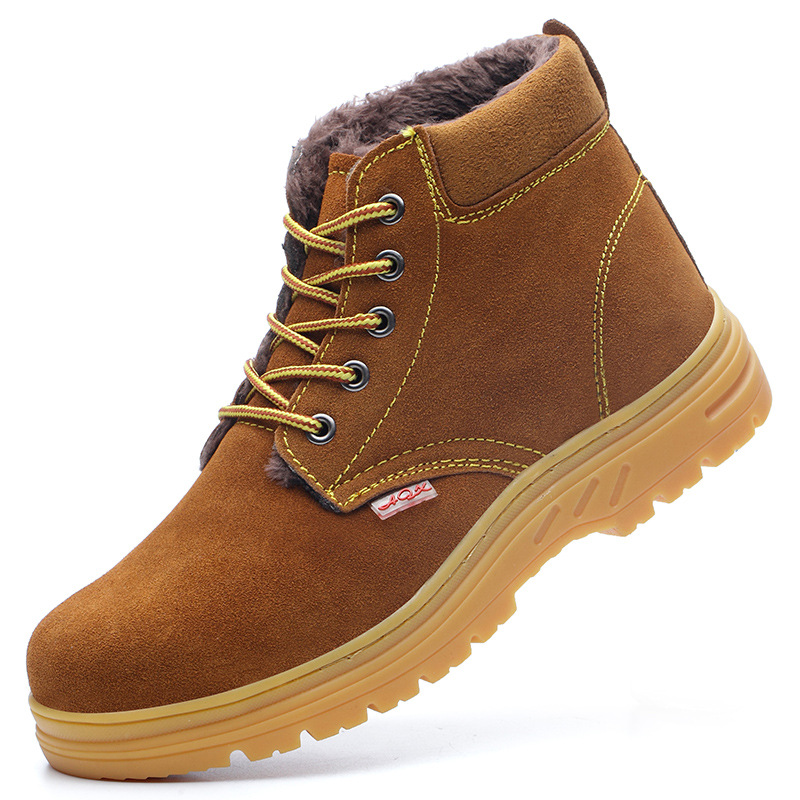 패션 겨울 두꺼운 따뜻한 용접기 신발 안티 스매싱 안티 피어싱 보호 신발 안티 벨벳 소가죽 고온 저항 안전 신발