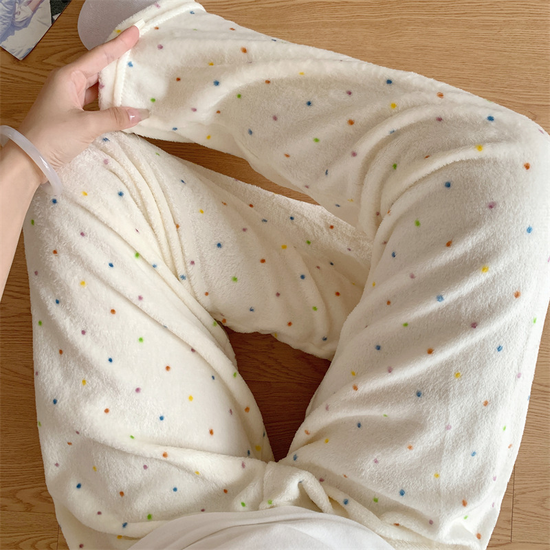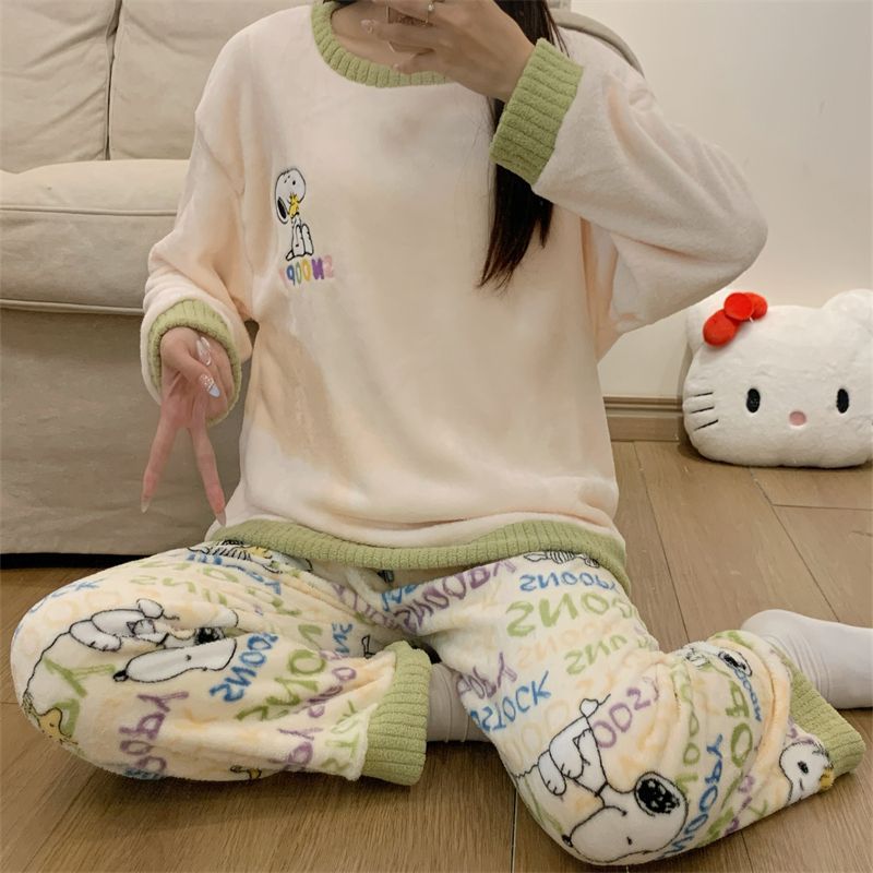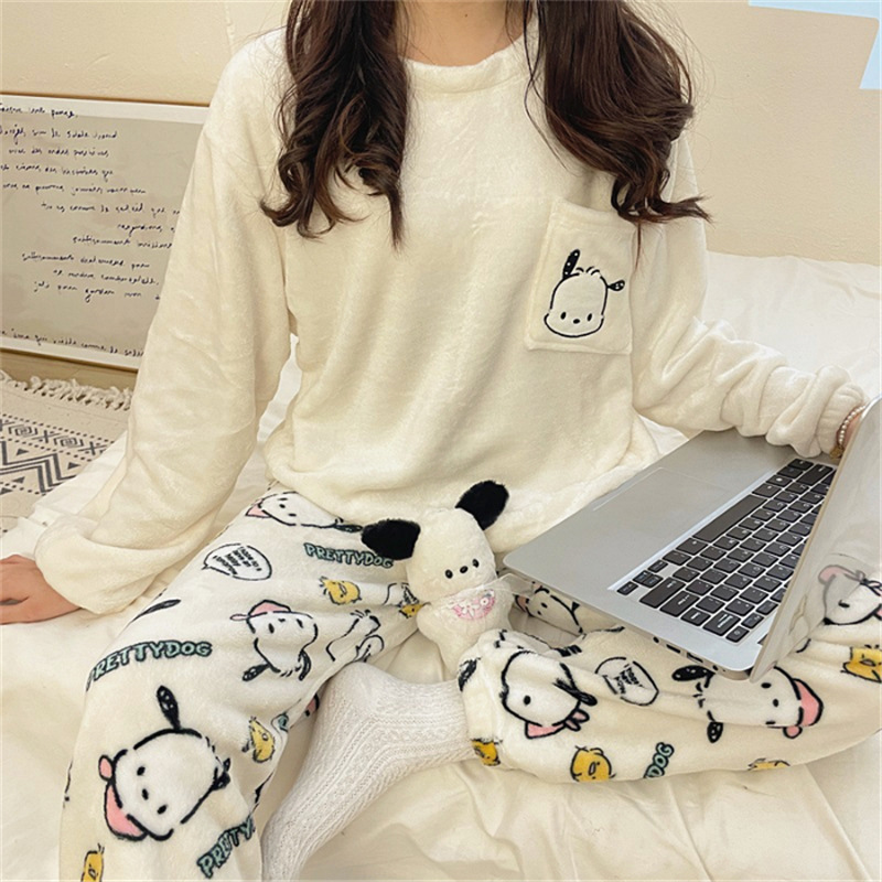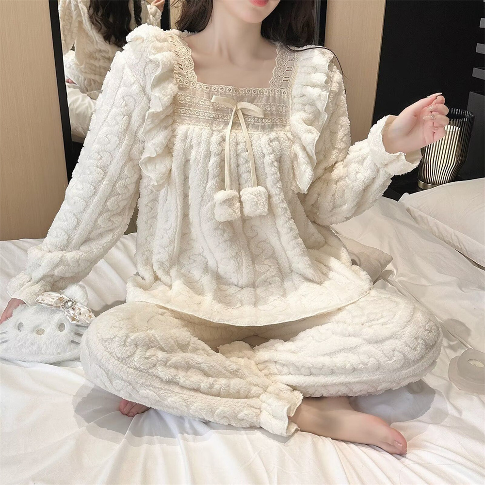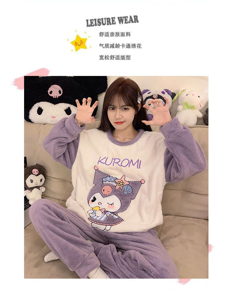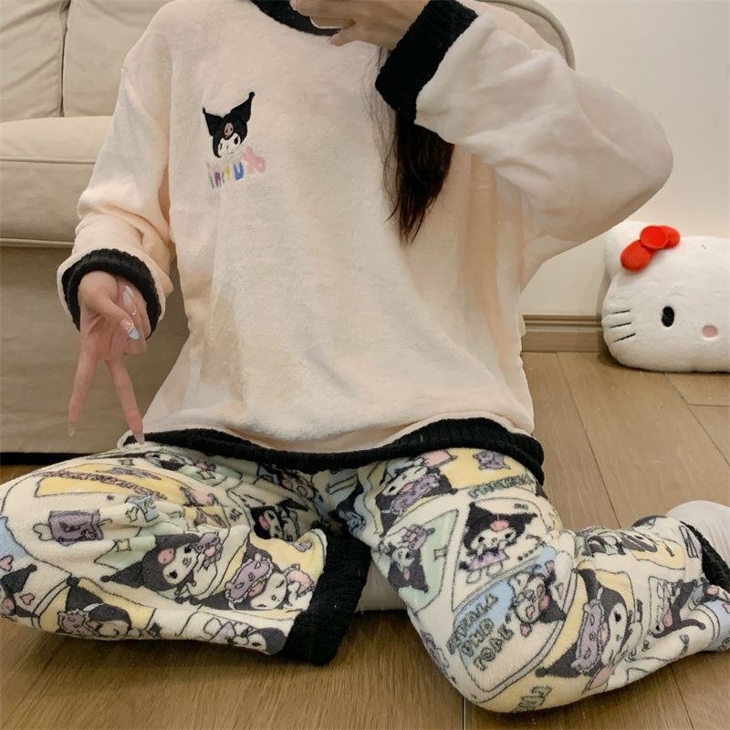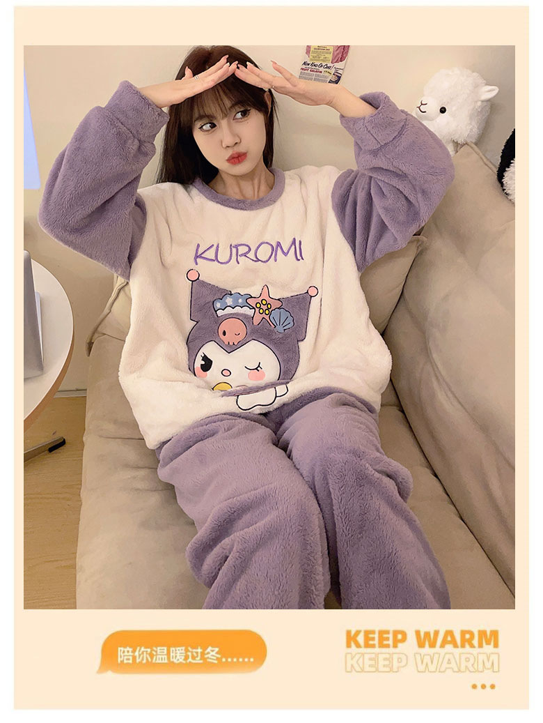 라이브 핫 잠옷 여자의 가을과 겨울 산호 양털 따뜻한 귀여운 달콤한 세트 양털 가정 옷 대량 할인스토어 가기