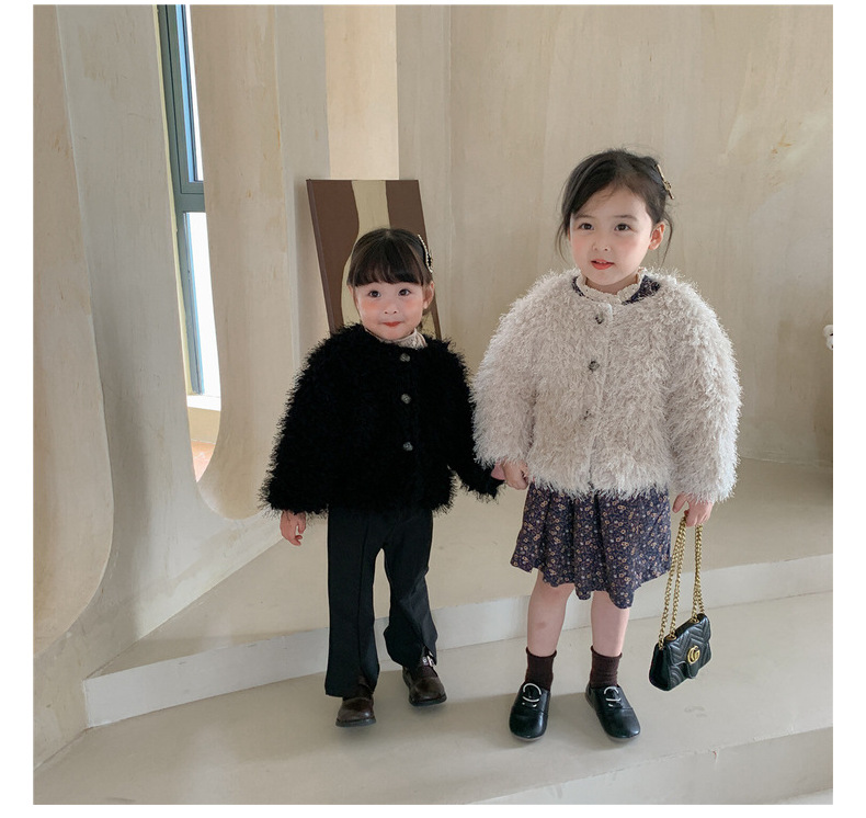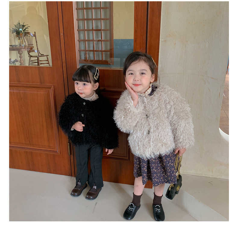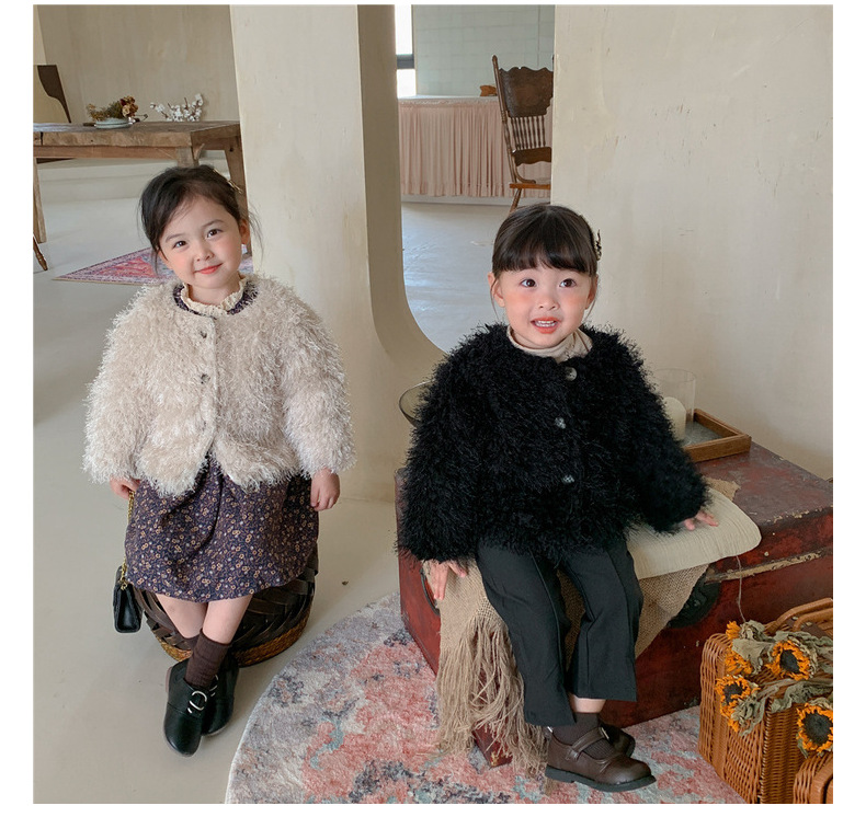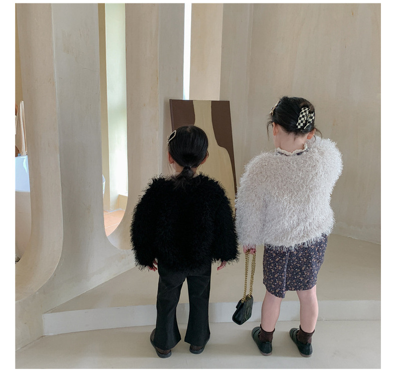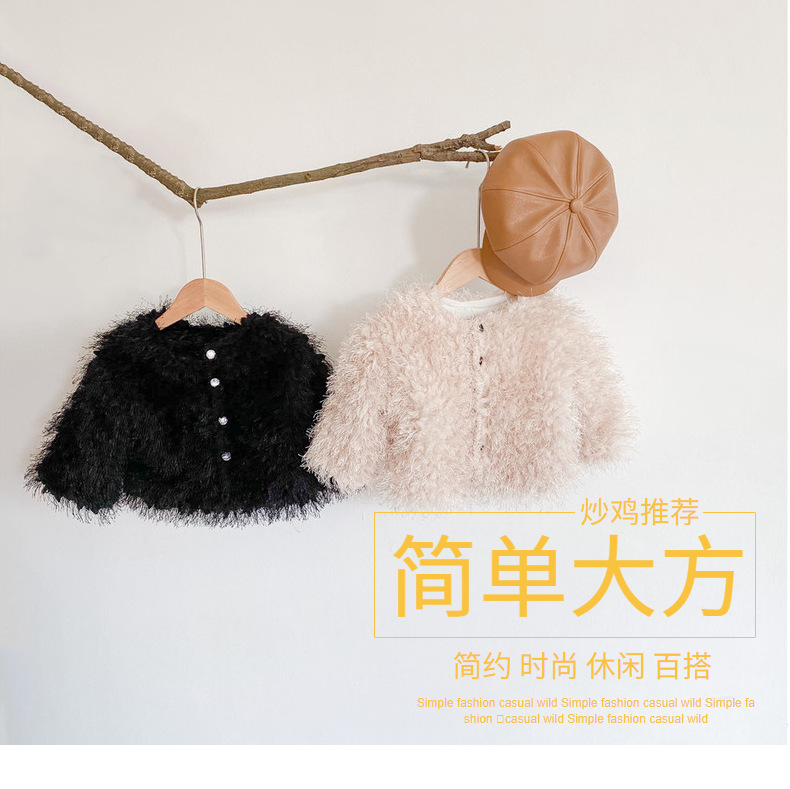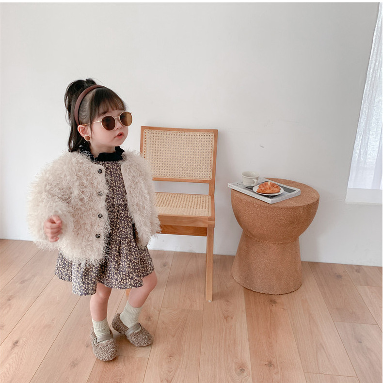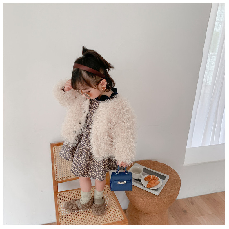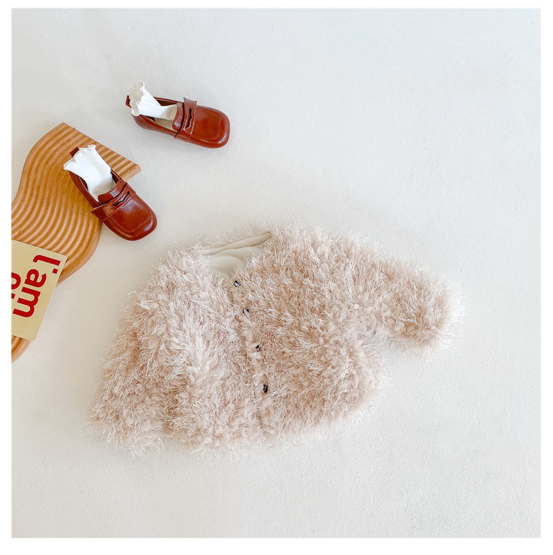 여아 웨스턴 스타일 모직 코트 2023 겨울 한국 아동 의류 아기 여아 가벼운 럭셔리 모피 짧은 코트 트렌디 가디건스토어 가기