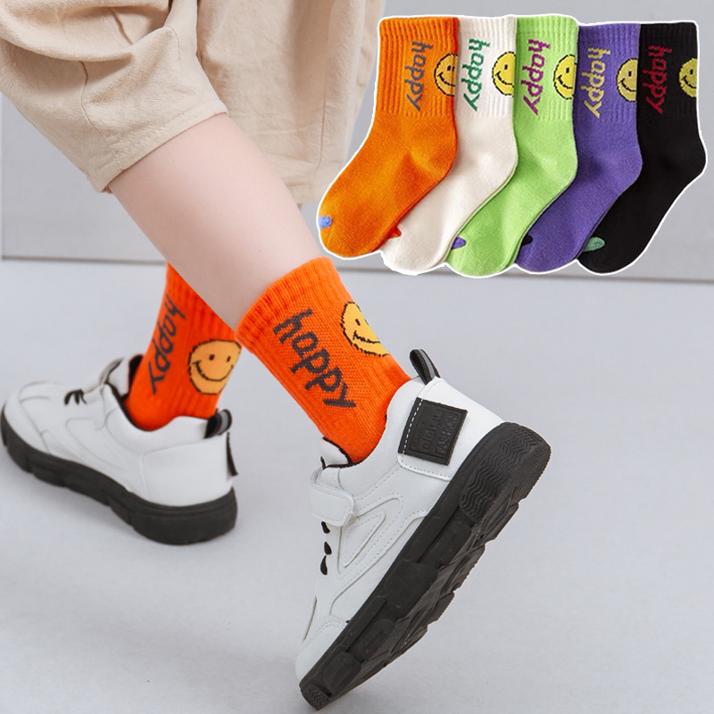 • 행복한 세련된 양말 웃는 얼굴 중간 튜브 5 색상 일치