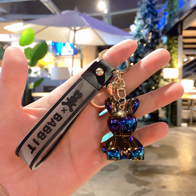 전기도금 아크릴 토끼 열쇠고리 인형 열쇠고리 키링 가방 장식 열쇠고리 자동차 키
