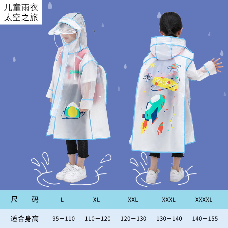 어린이 비옷 소년 소녀 이중 챙 학생 학교 전신 가방 판초 아기 어린이 비옷